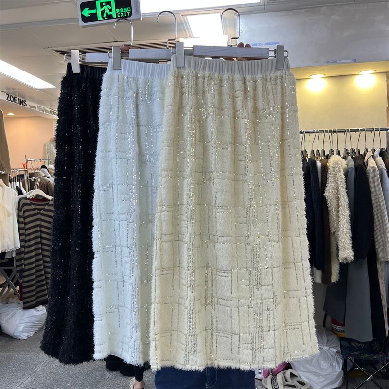 Nomikuma スパンコール Blingbling スカート レディース 秋冬 2022 ボトムス ウエストゴム ストレートスカート エラスティック 伸縮 オータム 秋物 ウィンター 冬物 kor51856557638