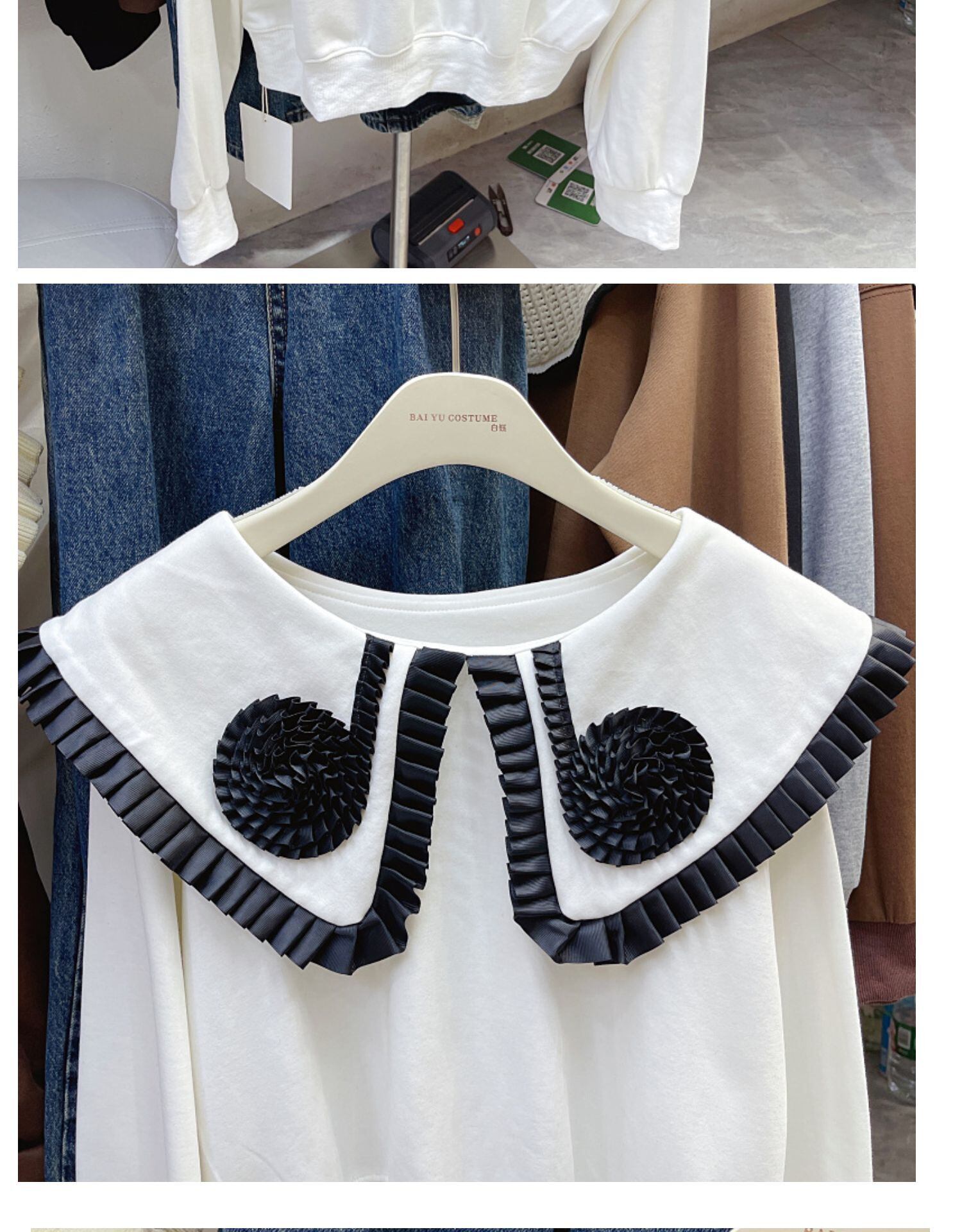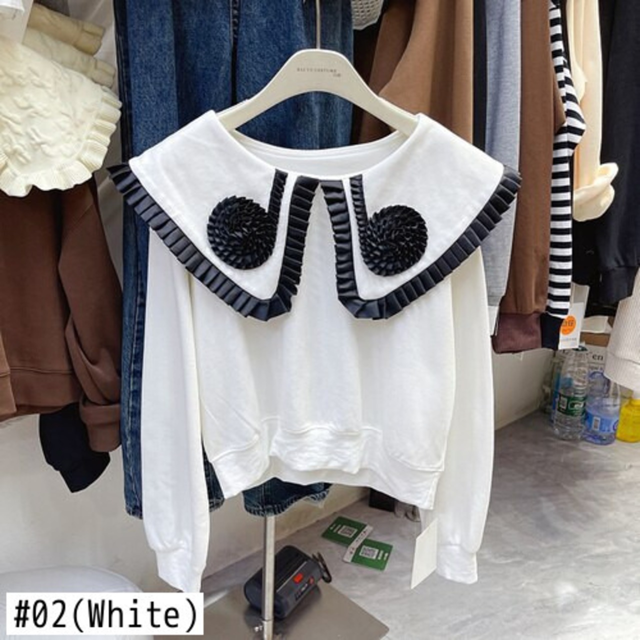 Nomikuma 2022 秋シックなフリル花ピーターパン襟プルオーバースウェットシャツ因果長袖甘いショート女性ジャンパー ロング 大人ガーリー スウィート キュート カジュアル オータム 秋物 フラワーデザイン kor17263986421