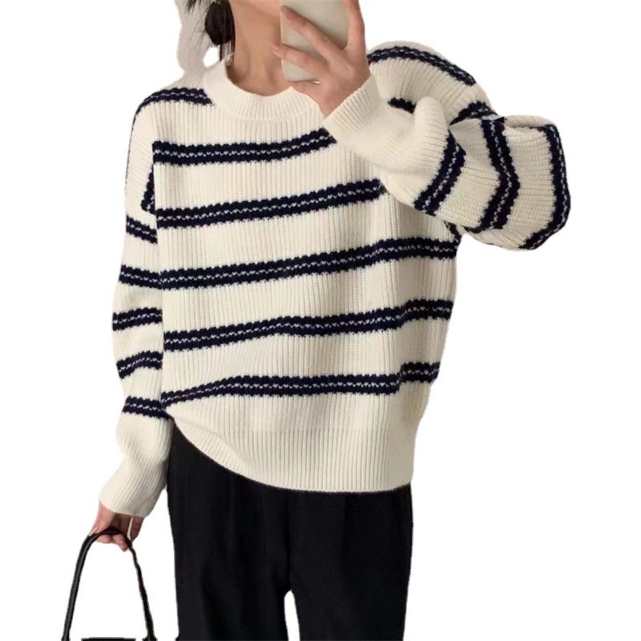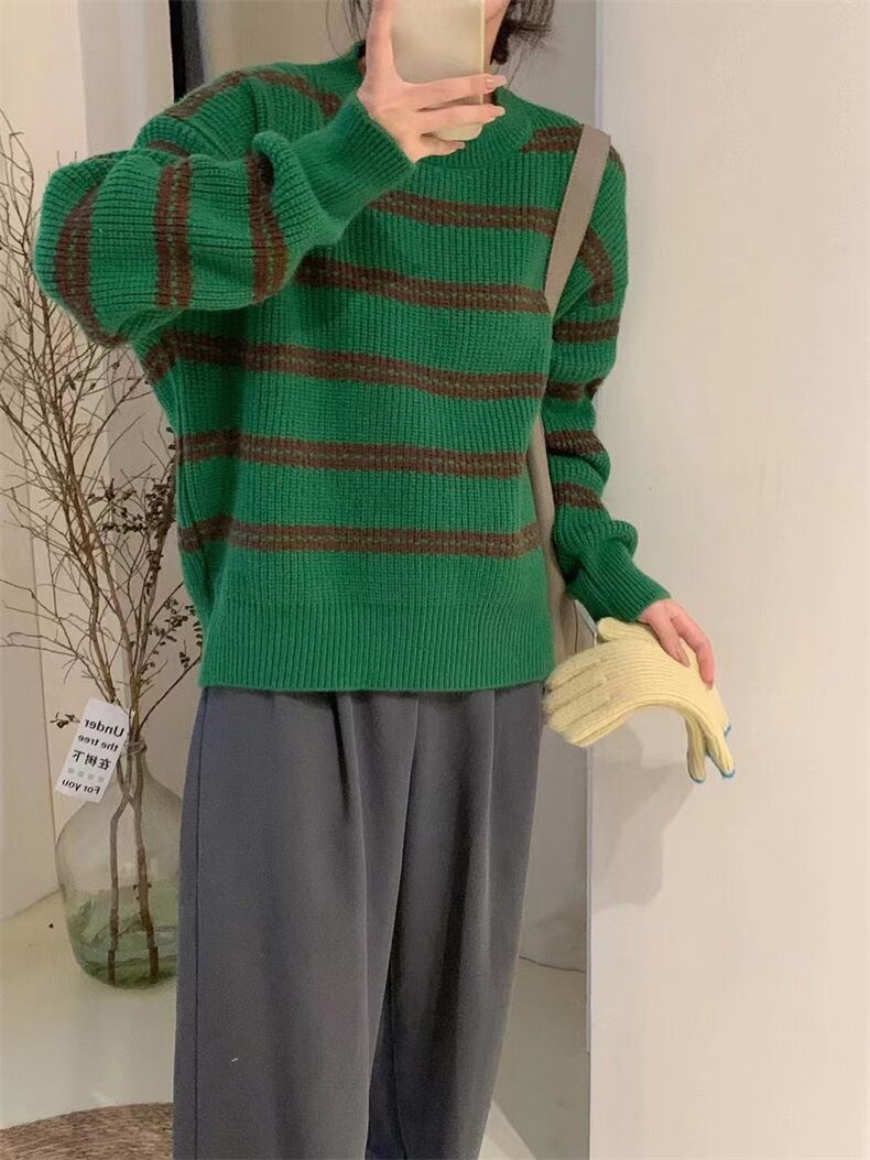 Nomikuma O ネックストライプニットセーター女性 2022 秋冬プル因果長袖 O ネックプルオーバーニット ロング オータム 秋物 ウィンター 冬物 Oネック kor33233043719