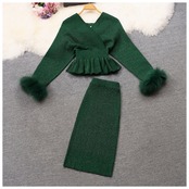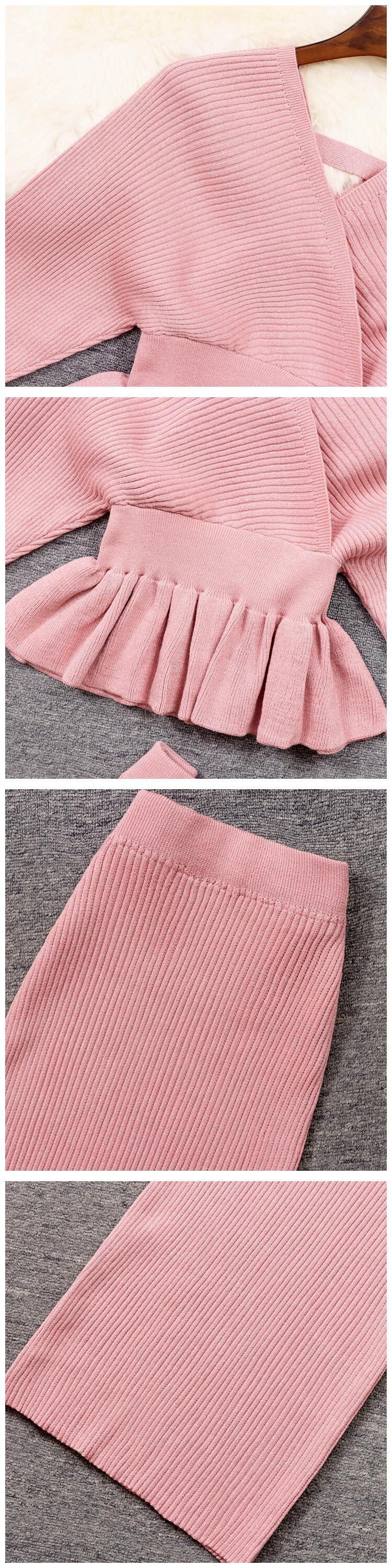 Nomikuma 毛皮バットウィングスリーブセーター女性 V ネックスリムウエストフリルショートニット + ウエストスリムスカートセット Vネック kor17632043415