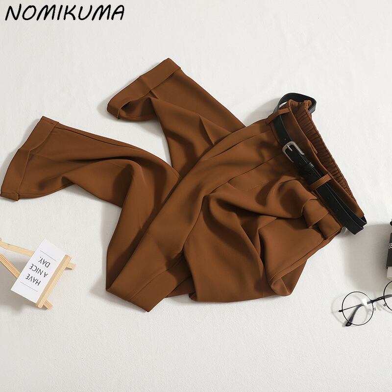 Nomikuma レディース ウエストベルト付き ストレートパンツ オフィスウェア ズボン 2022 夏 サマー 夏物 ハーネス 会社 学校 通勤や通学にも kor9088483023