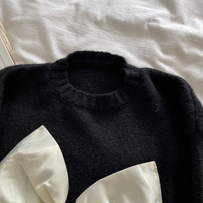 ノミクマ 2022秋冬 甘口ちょう結び ヒットカラー ニットセーター カジュアル 長袖 Oネック ミディアムロング プルオーバー ニット リボン 大人ガーリー スウィート キュート ウィンター 冬物 kor90619434595