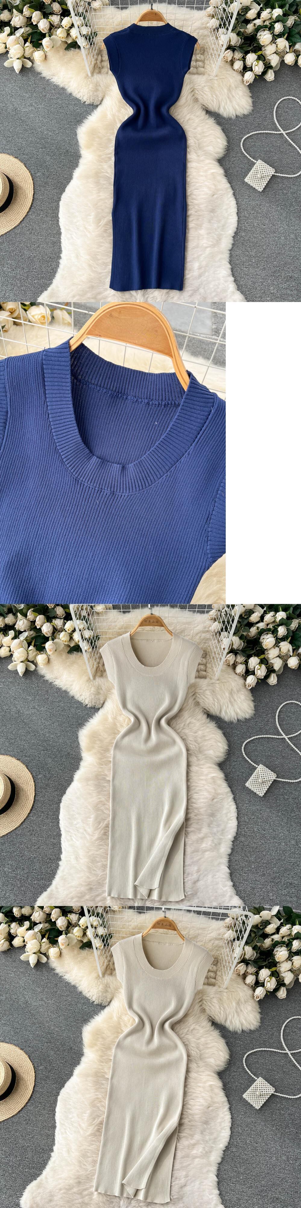 Nomikuma ノースリーブ O ネックスリムボディコン無地スプリット裾ドレス女性のセクシーな Vestido Feminino 夏 サマー 夏物 Oネック ソリッドカラー kor54991586154