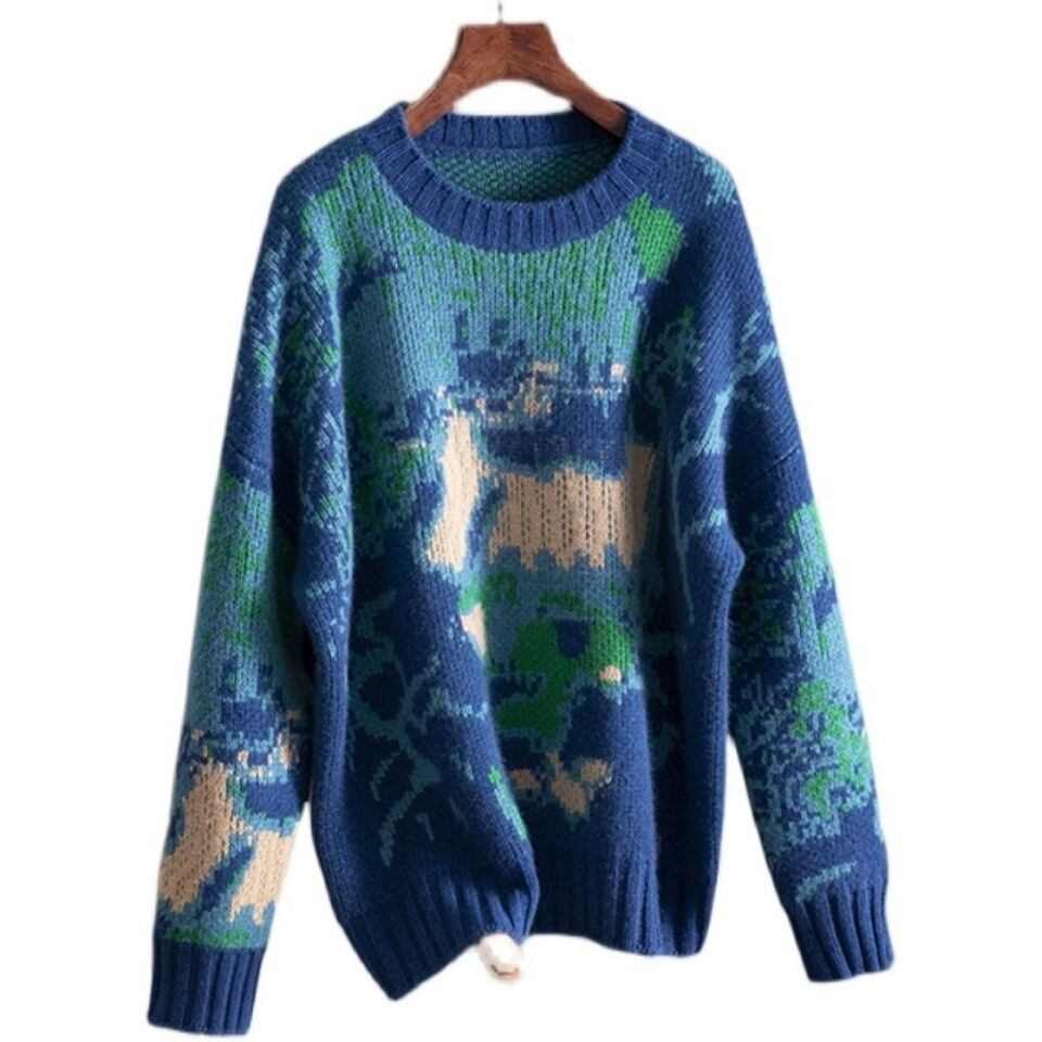 Nomikuma ブループルオーバーニットセーター女性秋冬 2022 プル因果長袖 O ネックニットトップス ロング オータム 秋物 ウィンター 冬物 Oネック kor66600222890