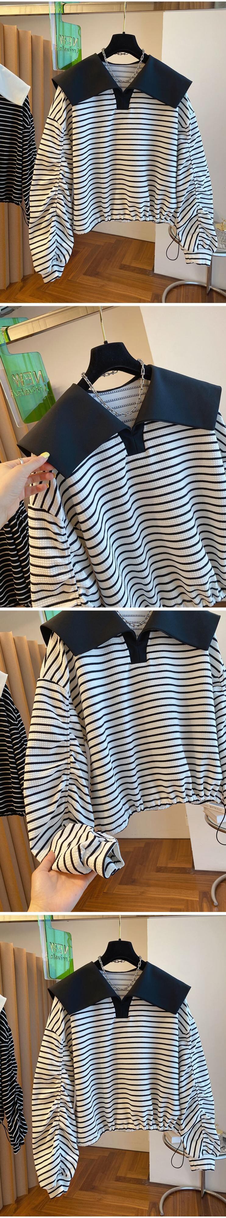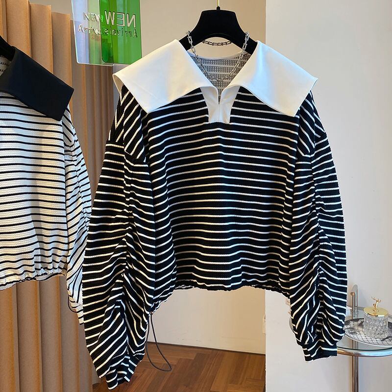 ノミクマ 因果 ストライプ プルオーバー トレーナー ターンダウンカラー 長袖 パーカー 2022年 巾着 ショートジャンパー ロング kor69890812897