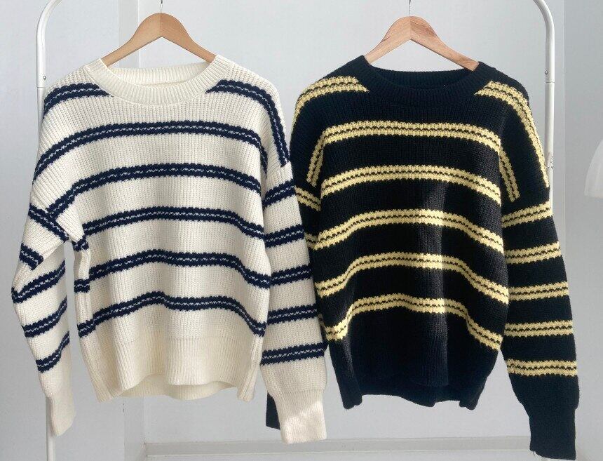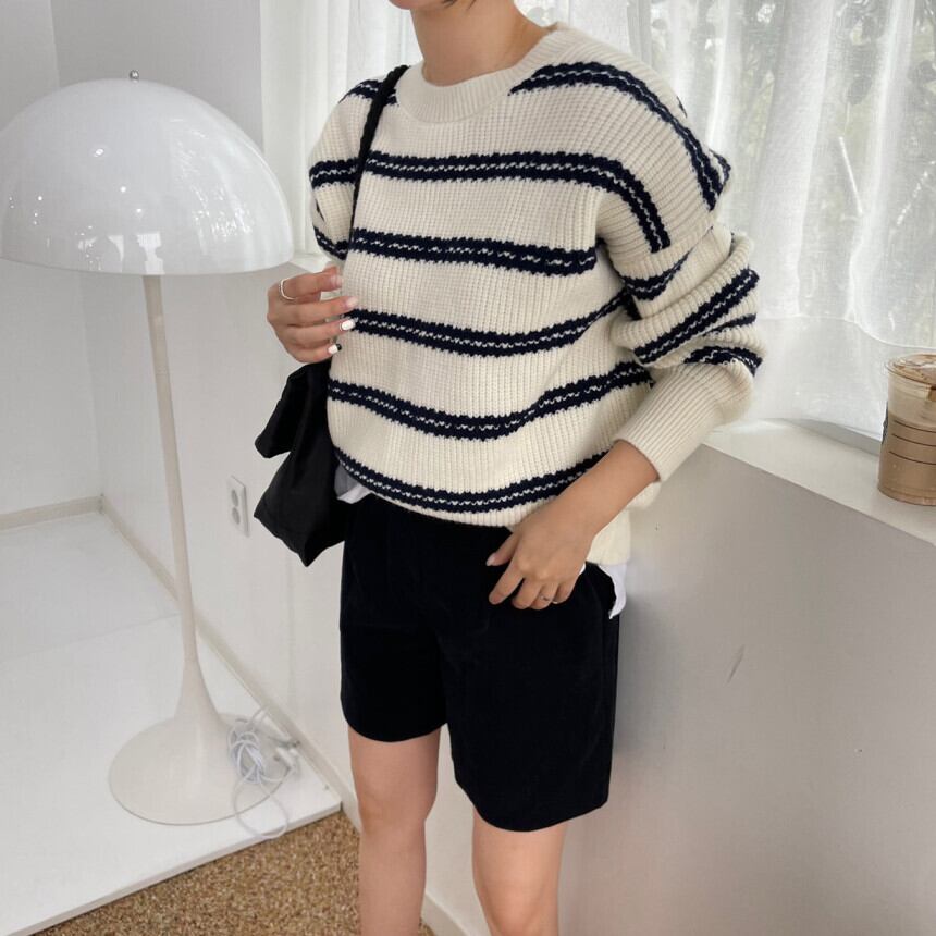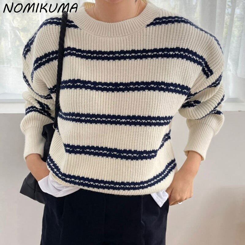 Nomikuma プルヒットカラーストライプ女性セーター 2022 秋冬長袖 O ネックプルオーバーニットトップス ロング オータム 秋物 ウィンター 冬物 Oネック kor82499546822