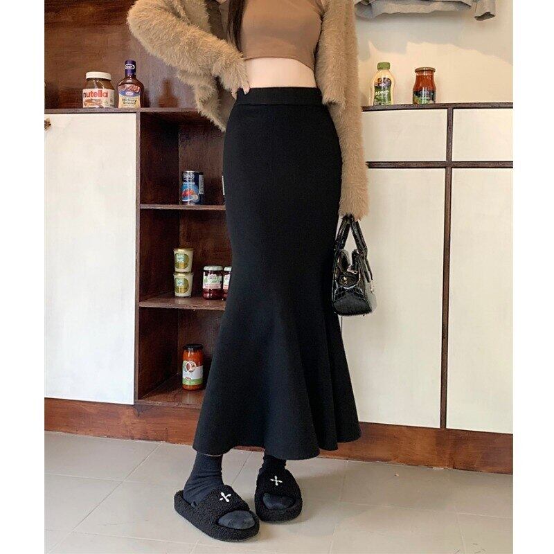 Nomikuma ニットスリムマーメイドスカート女性秋冬ボトムスウエストストレッチセータートランペットスカート オータム 秋物 ウィンター 冬物 kor59440832855