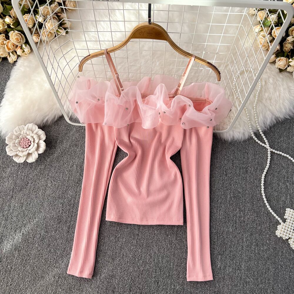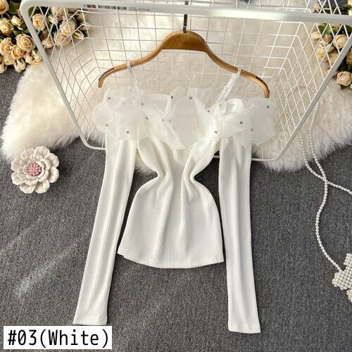 Nomikuma ガーゼダイヤモンドパッチワークオフショルダー長袖 Tシャツ女性 2022 秋のシックなセクシーなスリム Tシャツトップスシャツ ロング オータム 秋物 kor38901378252