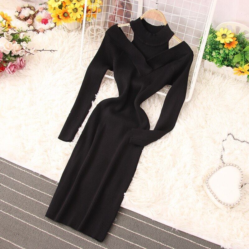 Nomikuma Vestido Feminino 春秋中空アウトスリムボディコンニットシックな女性ドレス気質セクシーなローブは Longue ロング スプリング 春物 オータム 秋物 kor46171240798