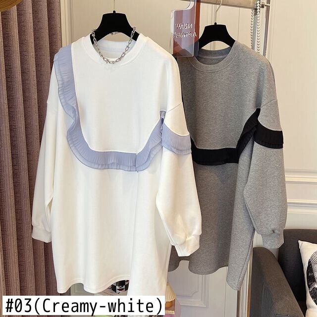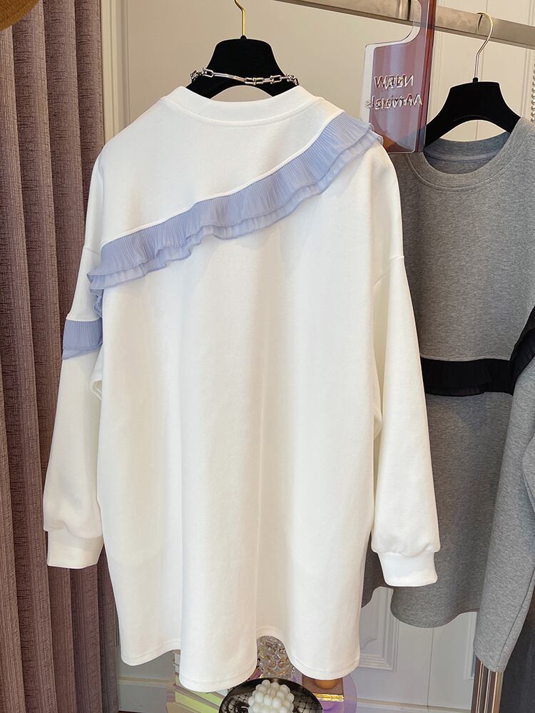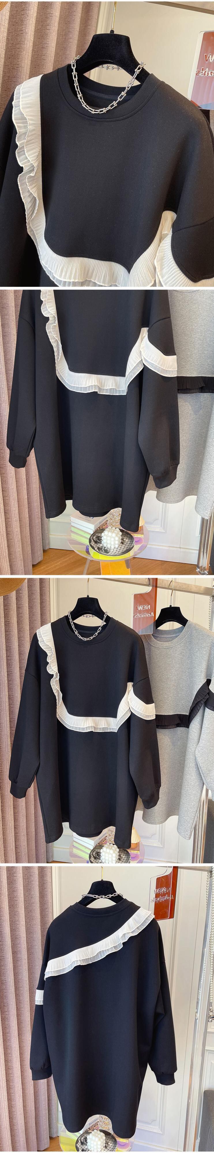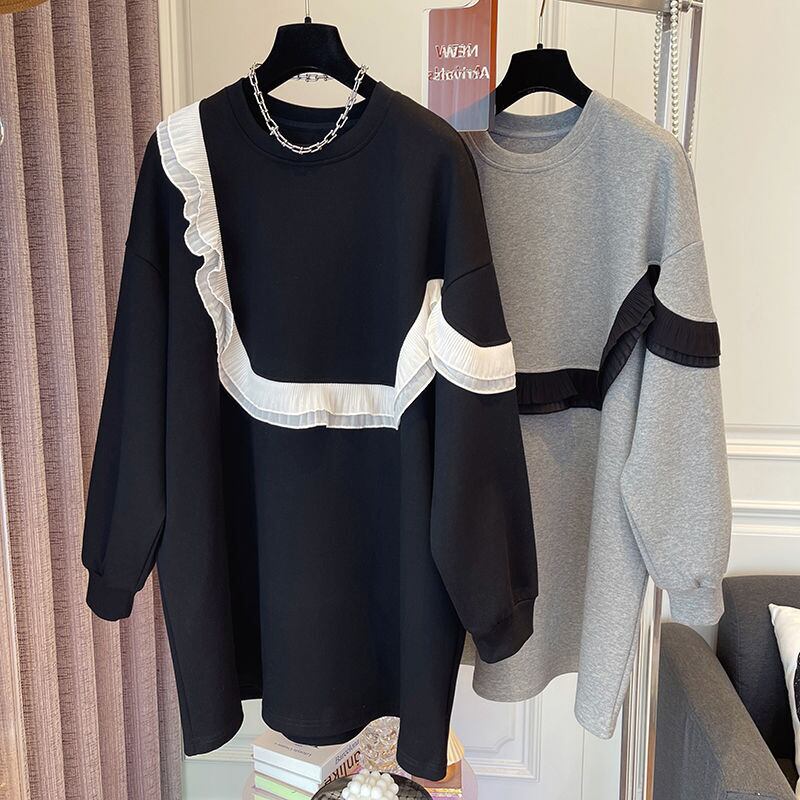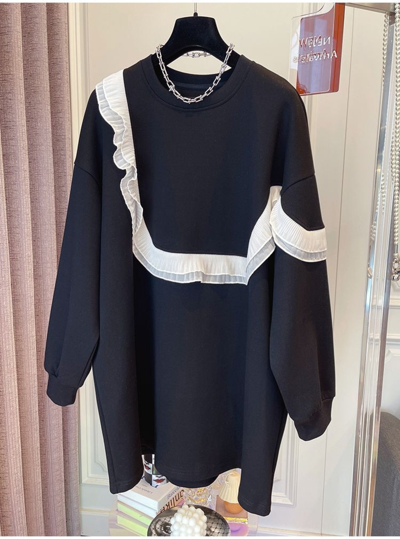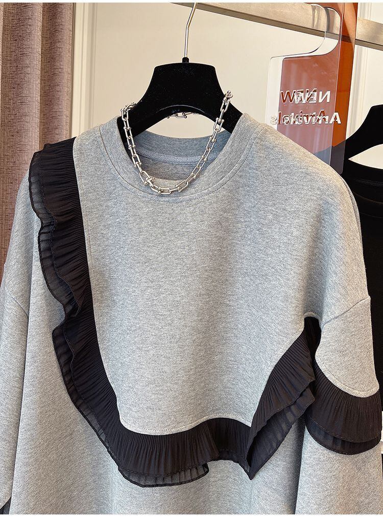 Nomikuma シックなメッシュ フリル ヒット カラー パッチワーク Sweatshrit 秋 2022 女性ジャンパー ミディアム ロング パーカー トップ オータム 秋物 kor82396679518