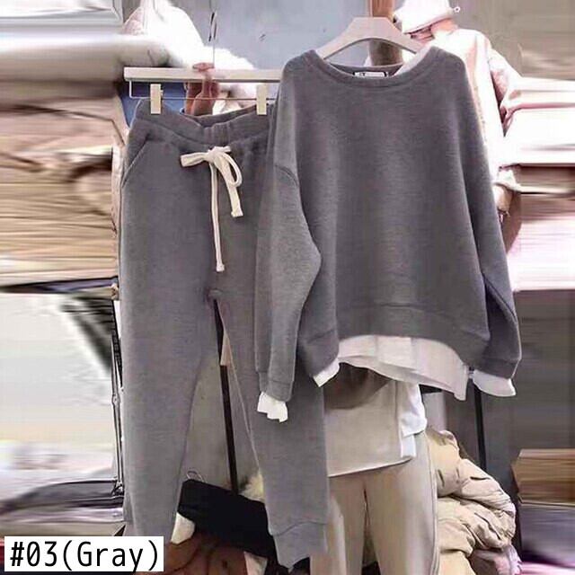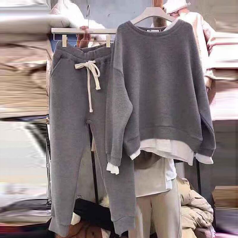 Nomikuma 因果セット女性秋冬フリース衣装 2022 パッチワークプルオーバースウェットシャツ + レースアップウエストハーレムパンツ オータム 秋物 ウィンター 冬物 kor55942020488