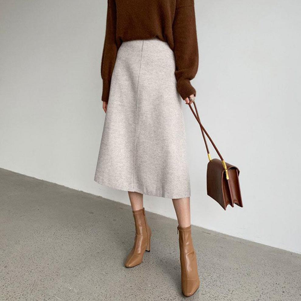 ノミクマ秋冬スタイルウエストスカートレディース厚みのあるウールスカート段 Faldas Moda 2022 オータム 秋物 ウィンター 冬物 kor91896111100