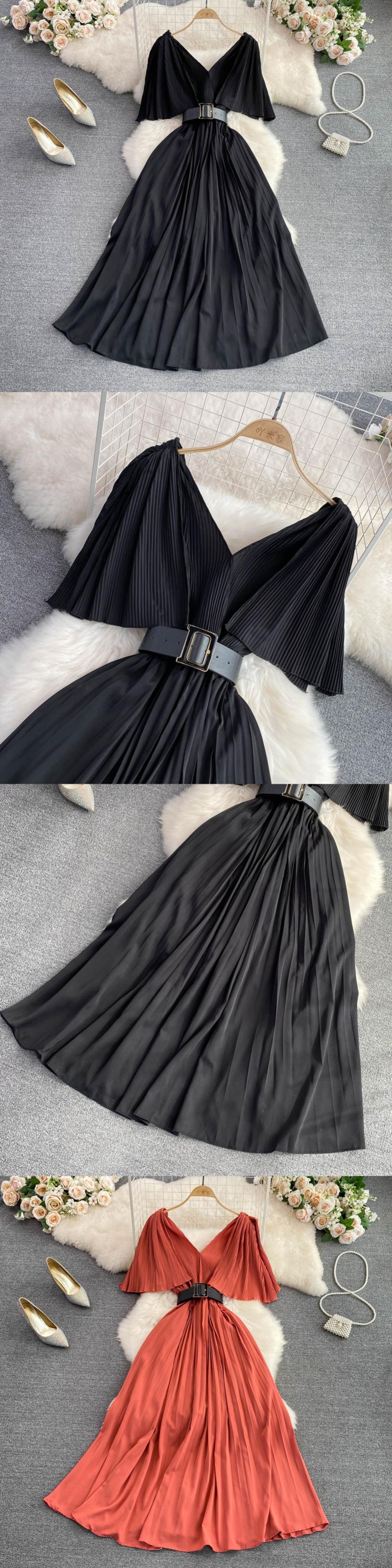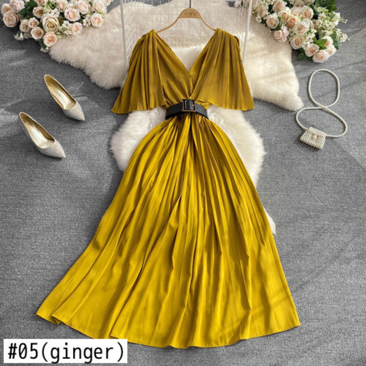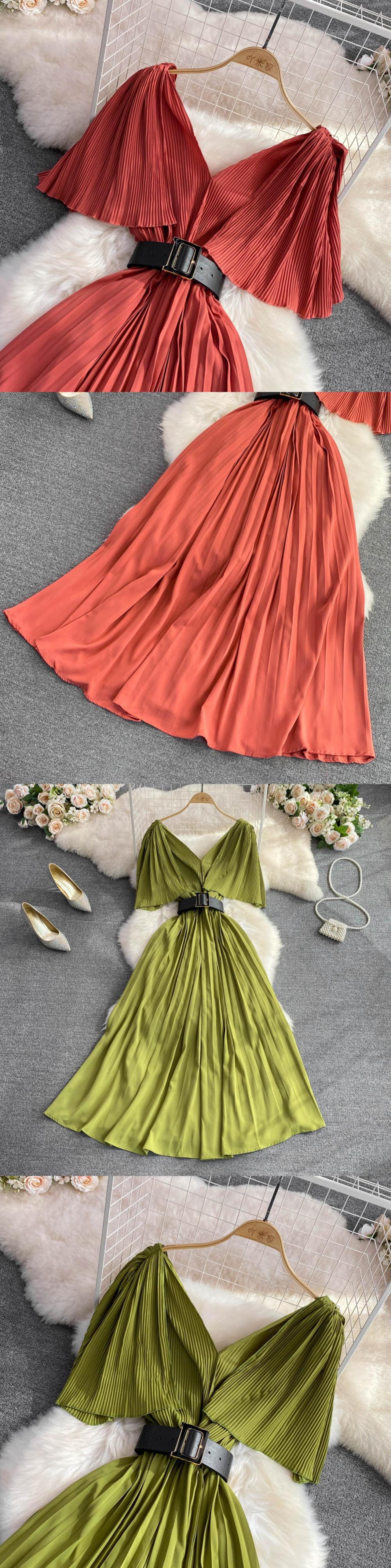 Nomikuma 2022 夏 V ネックドレスバタフライスリーブベルトスリムウエスト Vestidos ソリッド女性ドレス サマー 夏物 ハーネス Vネック ソリッドカラー kor39699582777
