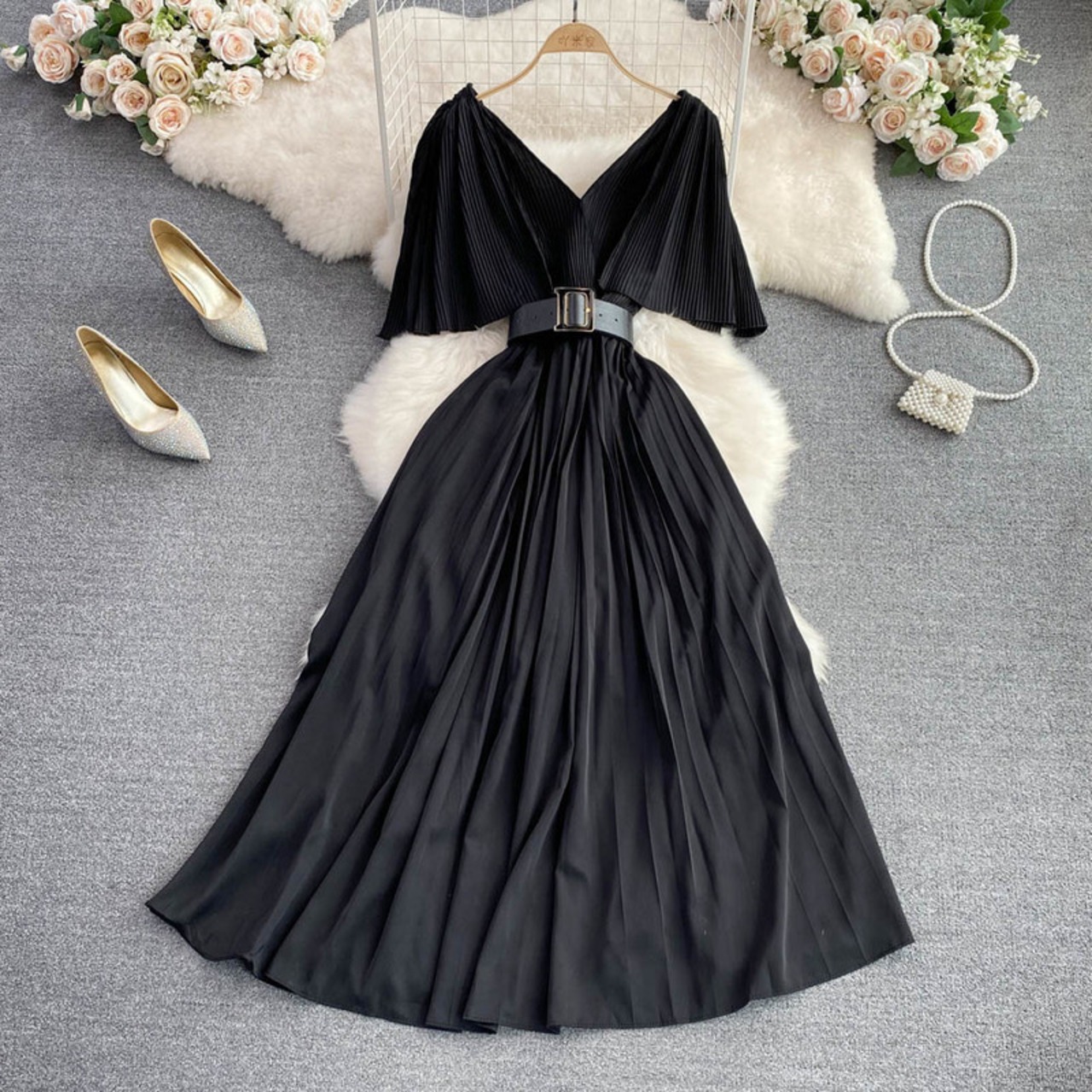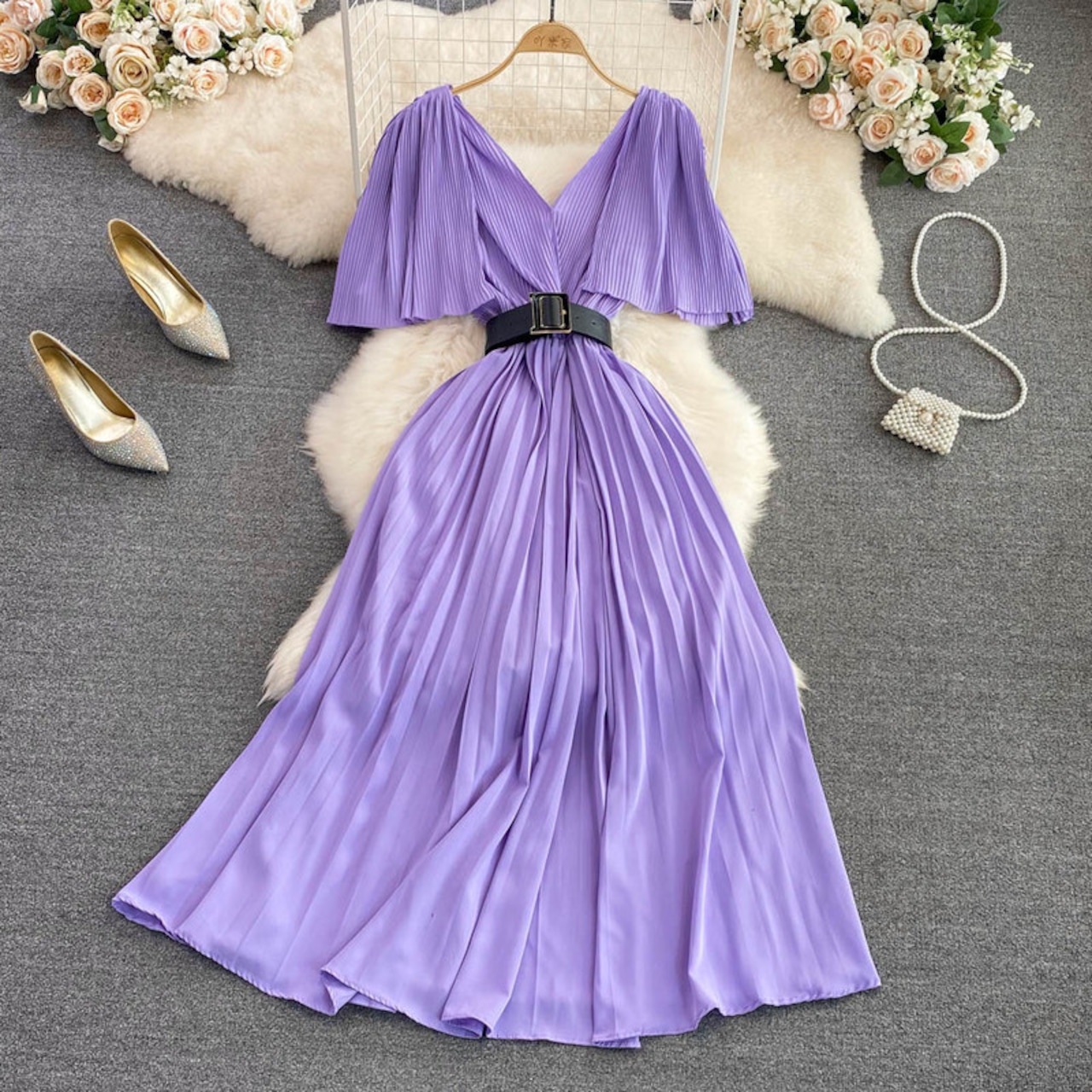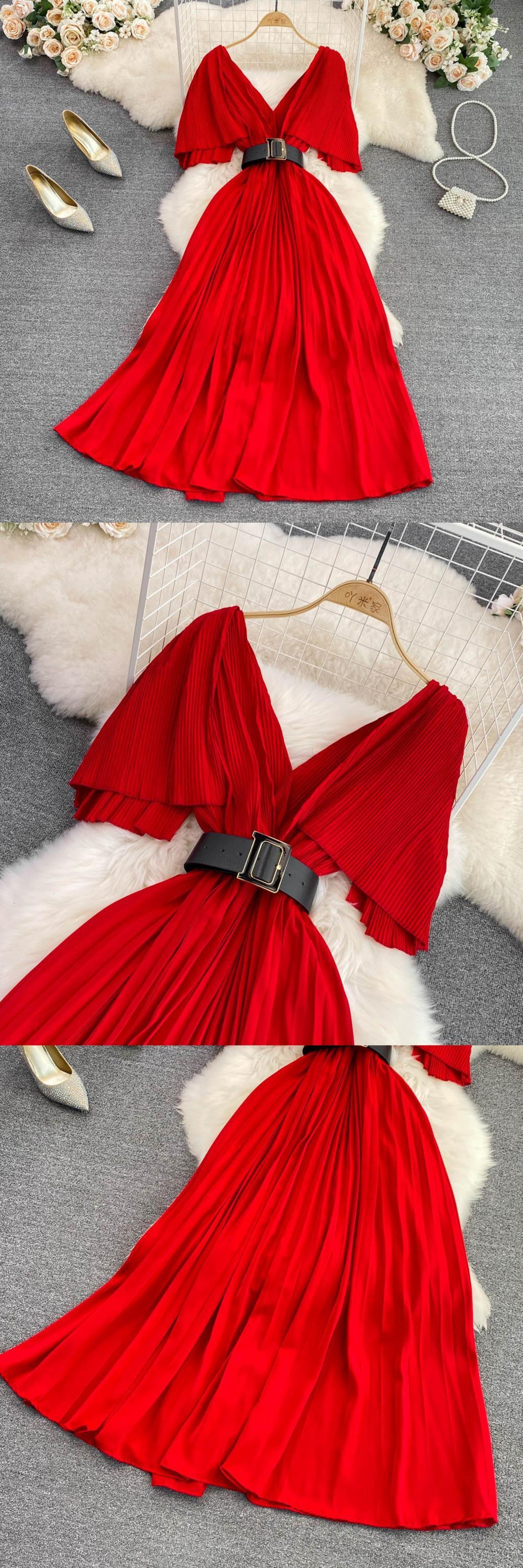 Nomikuma 2022 夏 V ネックドレスバタフライスリーブベルトスリムウエスト Vestidos ソリッド女性ドレス サマー 夏物 ハーネス Vネック ソリッドカラー kor39699582777