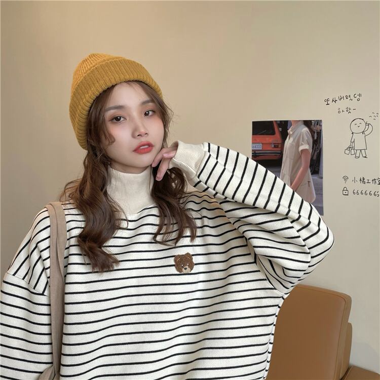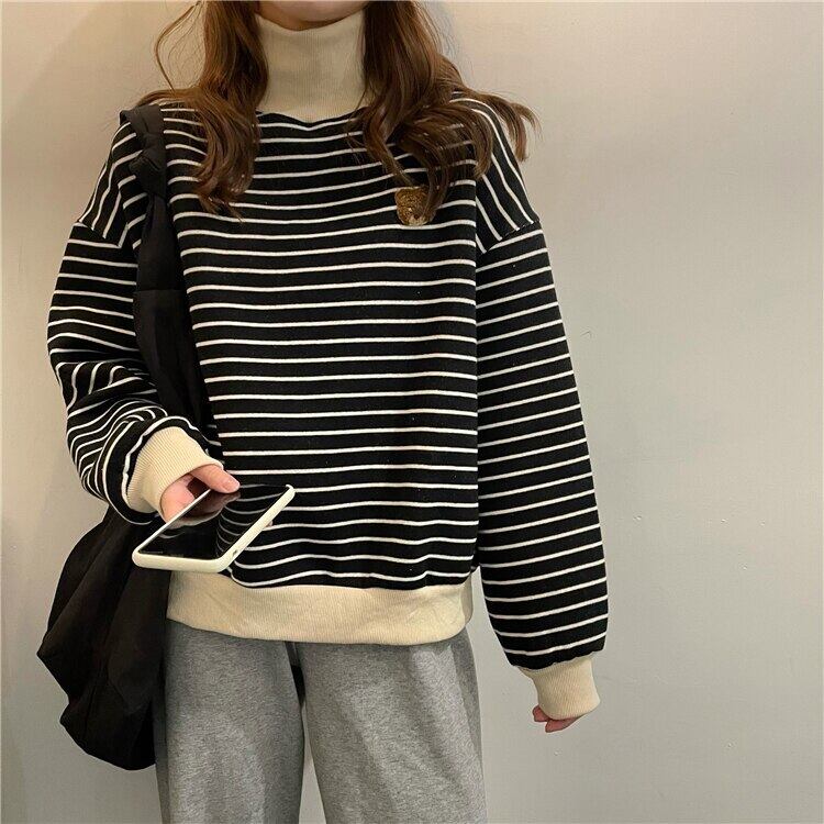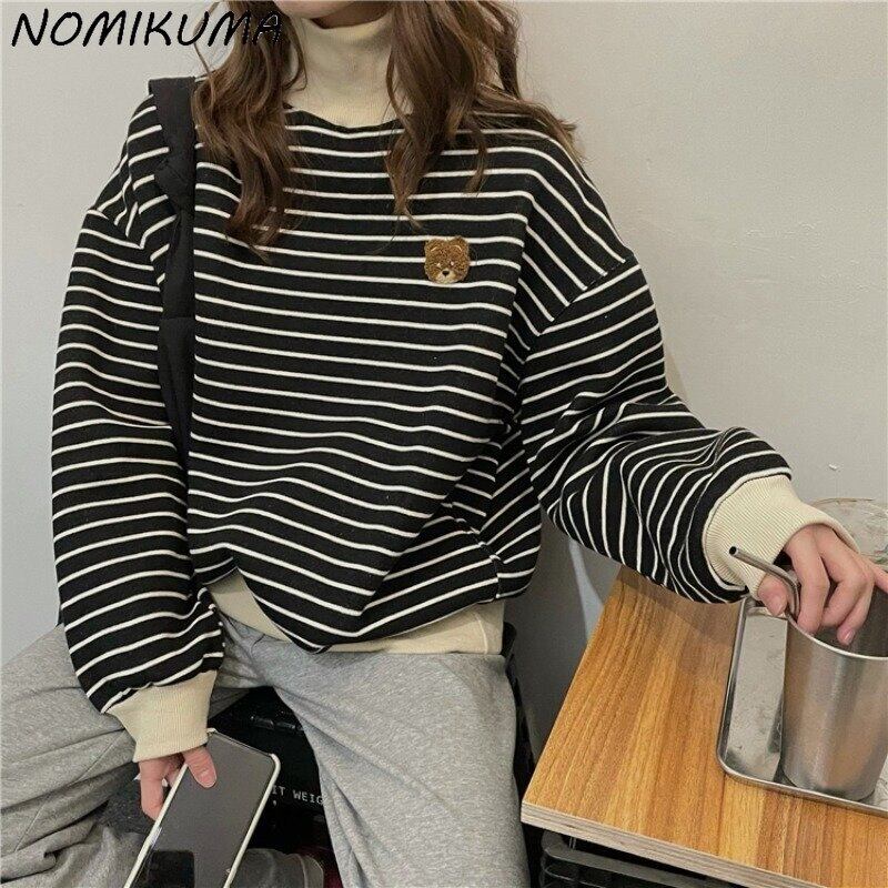 Nomikuma フリースプルオーバーパーカートップ因果長袖ストライプのシックな刺繍女性スウェットシャツ 2022 秋ジャンパー ロング オータム 秋物 kor63836755677