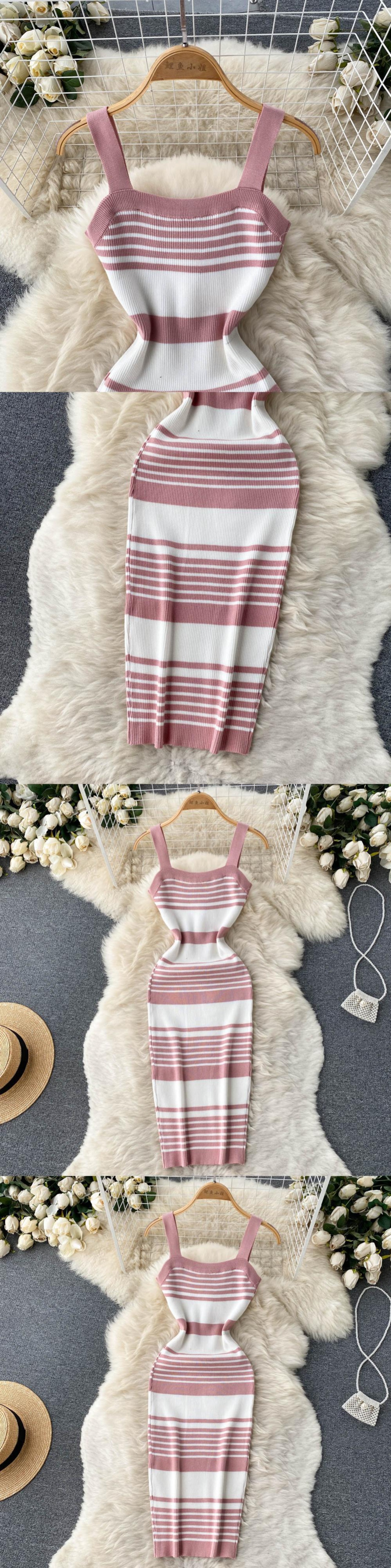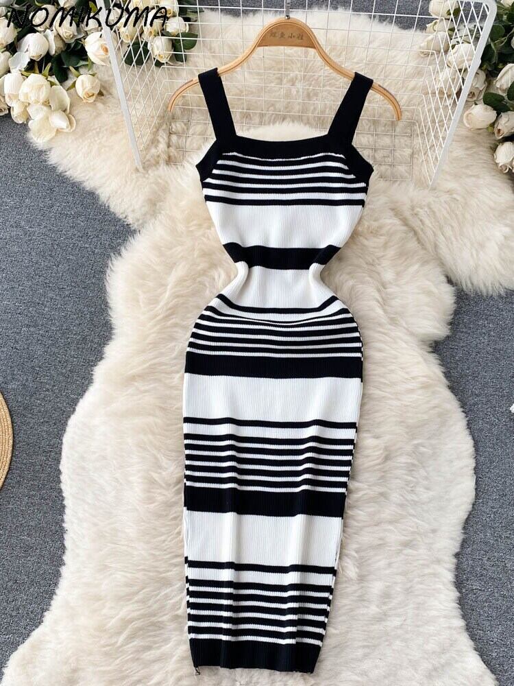 Nomikuma 夏ニットドレス女性 2022 ノースリーブストライプスリムボディコン Vestidos e セクシーなローブ サマー 夏物 kor1415782934