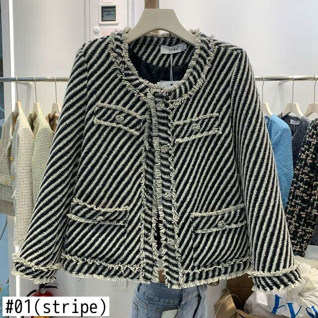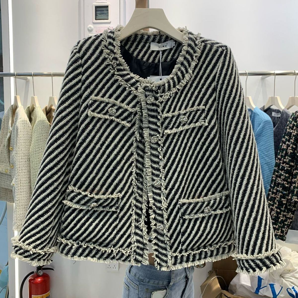 Nomikuma Tel O ネック長袖ストライプコート女性 2022 秋ブラックホワイトヒットカラーツイード生き抜くトップス ロング オータム 秋物 Oネック kor98123922720