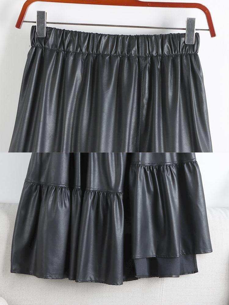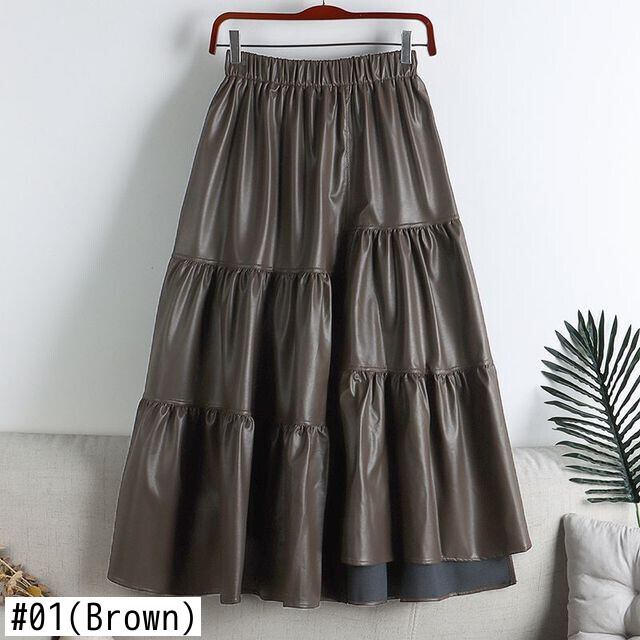 Nomikuma 2022 秋冬不規則なパッチワーク PU レザースカートレディース弾性ウエスト A ラインスカート段 Faldas エラスティック 伸縮 オータム 秋物 ウィンター 冬物 Aライン kor13806061479