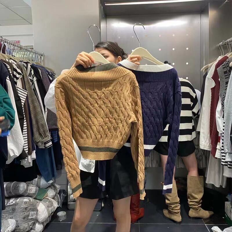 Nomikuma ショートセーター女性 2022 秋のヒットカラーストライププルオーバーニット因果長袖 V ネックニットトップス ロング オータム 秋物 Vネック kor36785526315