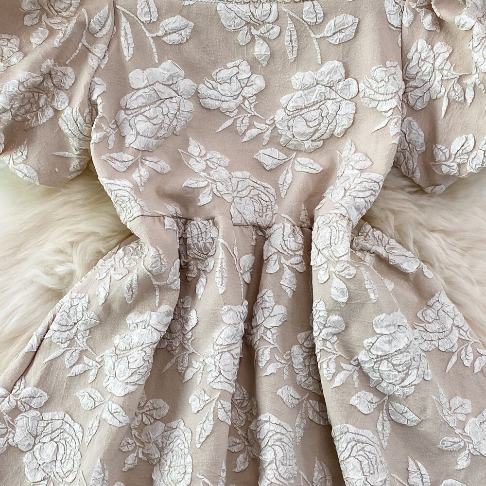 Nomikuma セクシーなスクエアネック A ラインドレス 2022 夏花ジャカードドレス女性パフスリーブスウィートウエスト Vestidos 大人ガーリー キュート カジュアル サマー 夏物 花柄 Aライン スクウェア kor51218052372