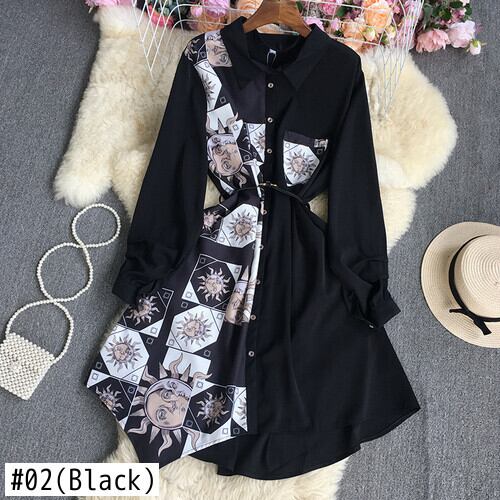 Nomikuma 印刷パッチワークブラウスドレスベルトスリムウエストの女性のドレス 2022 秋長袖 Vestidos ロング オータム 秋物 ハーネス kor84989918848