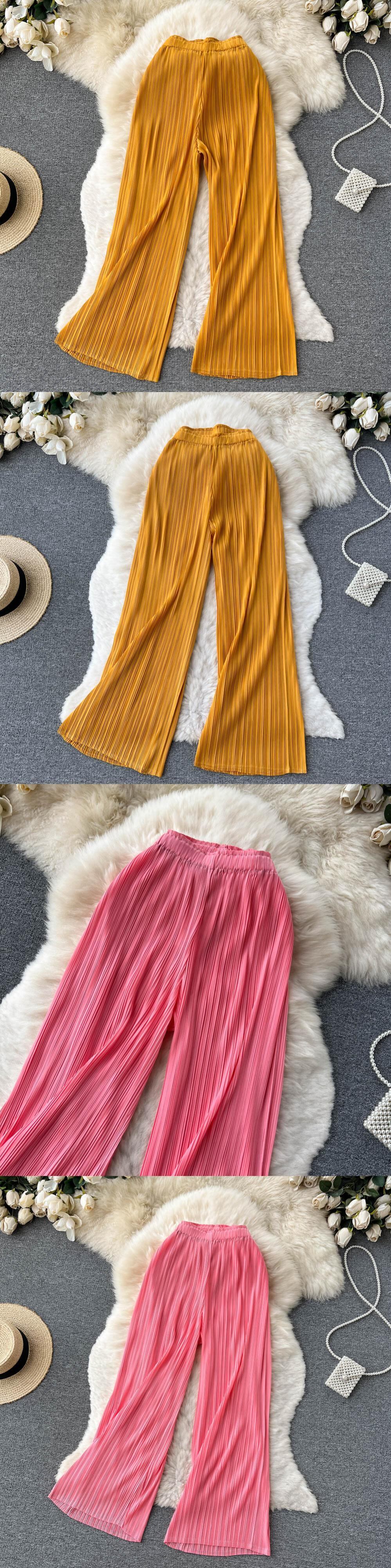 Nomikuma 無地因果女性パンツ夏 2022 長ズボン弾性ウエストワイドレッグ Pantalones デ ロング エラスティック 伸縮 サマー 夏物 ワイドパンツ ソリッドカラー kor94911833623