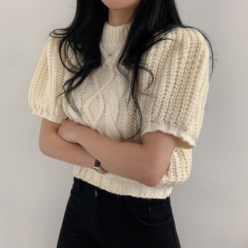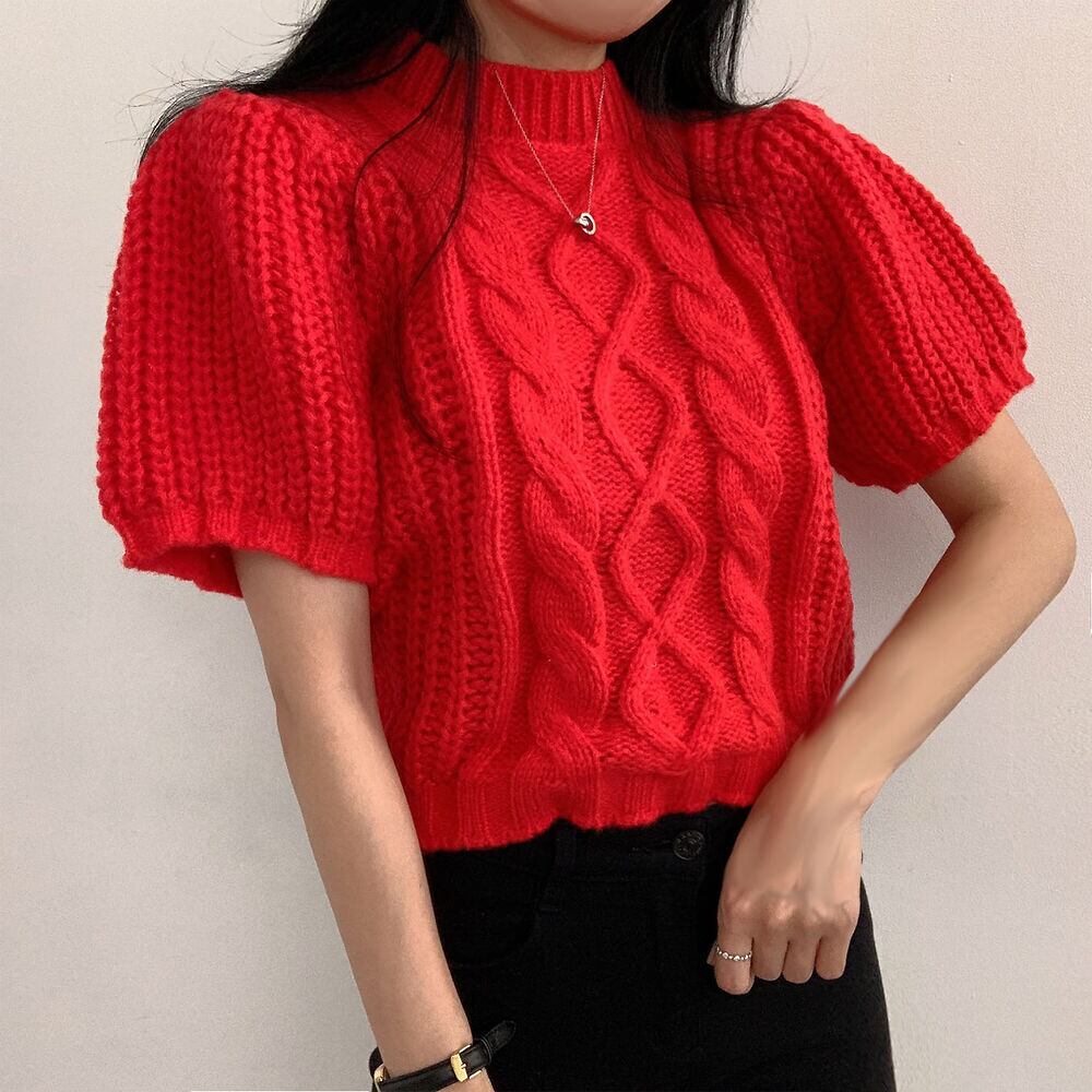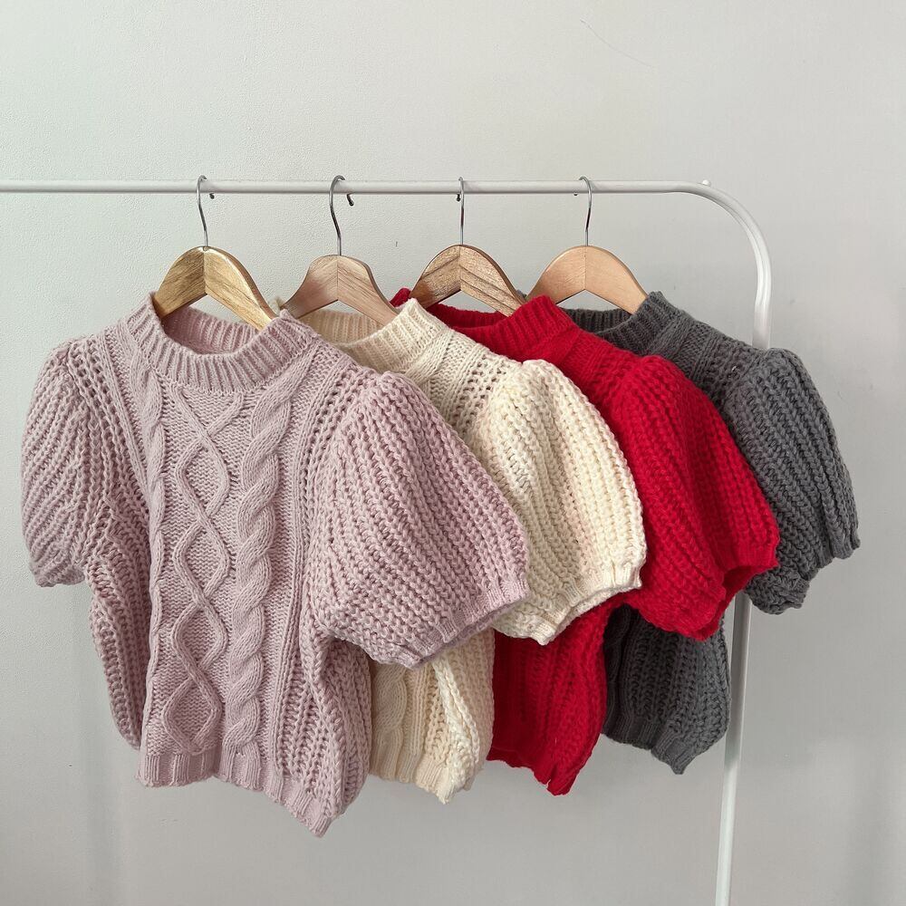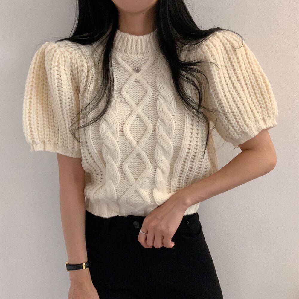 ノミクマ シック パフスリーブ Oネック プルオーバー ツイステッド ニット 2022秋冬 カジュアル プルオーバー ニット トップス オータム 秋物 ウィンター 冬物 kor2787096758
