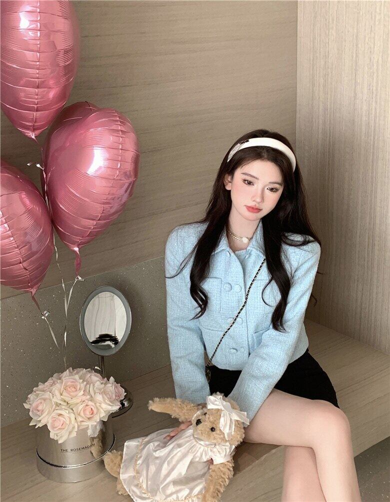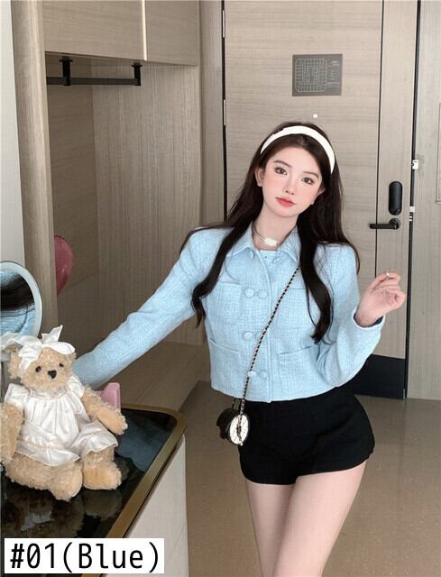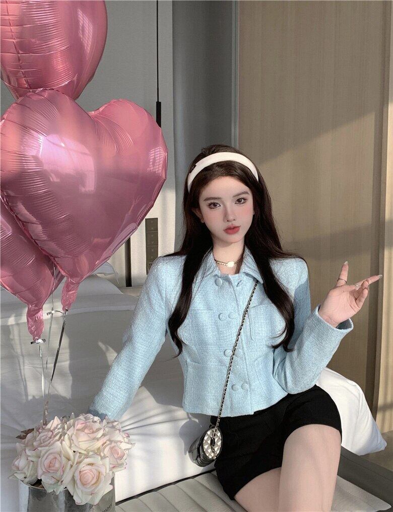 Nomikuma 2022 秋冬ショートウールコートシックなダブルブレスト生き抜くトップス無地女性ジャケット オータム 秋物 ウィンター 冬物 ソリッドカラー kor11793063534
