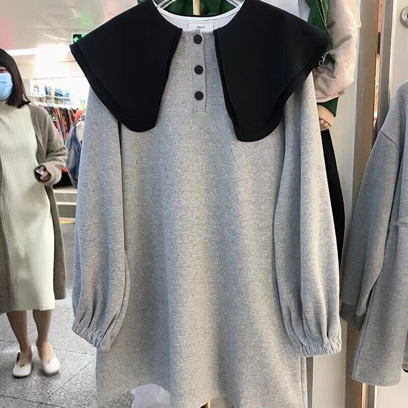 Nomikuma ヒットカラーピーターパンカラースウェットシャツドレス因果長袖 2022 秋のドレス甘い Vestidos ロング 大人ガーリー スウィート キュート カジュアル オータム 秋物 kor45696935489