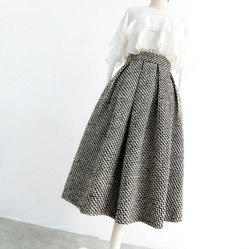 Nomikuma ツイード女性スカート 2022 秋冬ウエスト A ラインスカート段 Faldas Moda 2022 ボトムス オータム 秋物 ウィンター 冬物 Aライン kor36353268