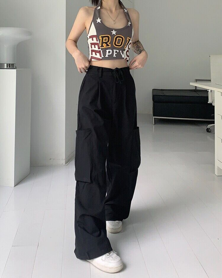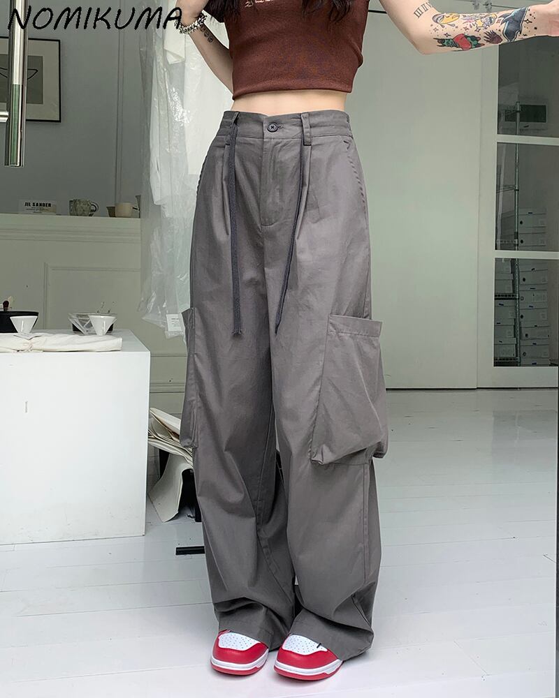 Nomikuma カーゴパンツ 2022 ウエスト女性長ズボン因果ポケットワイドレッグパンツ Pantalones ロング ワイドパンツ kor51838834560