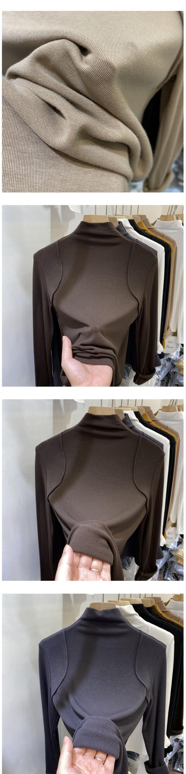 Nomikuma ハーフカラーフリース Tシャツ女性長袖秋冬底入れグラフィック Tシャツ ロング オータム 秋物 ウィンター 冬物 kor63422163366