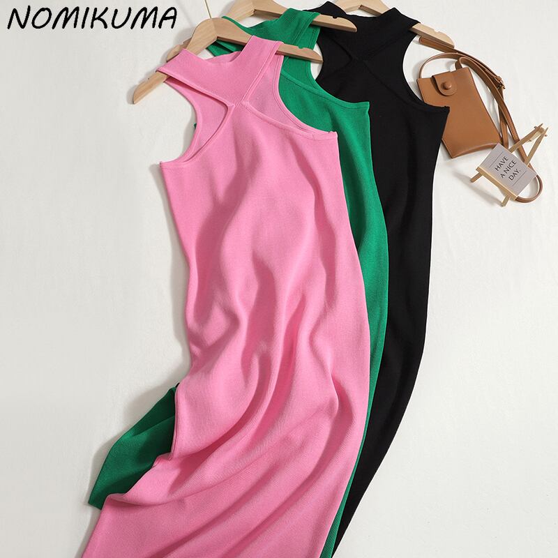 Nomikuma 2022 ノースリーブ バックレス ニット Vestidos Verano ローブ ドレス レディース kor97204034301