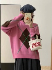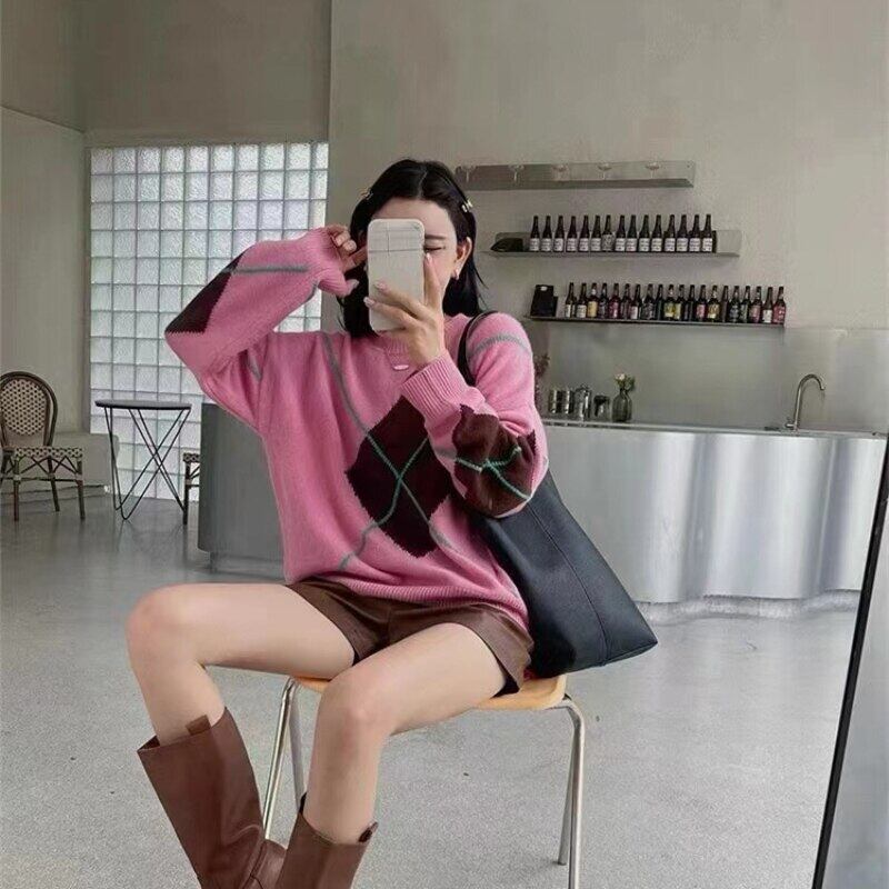 Nomikuma アーガイル女性セーター秋冬因果ニットトップスコートコントラストカラーニットプルオーバー オータム 秋物 ウィンター 冬物 kor8566989572