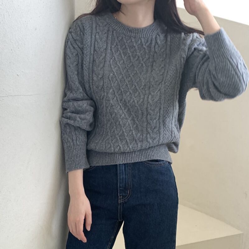 Nomikuma ツイストニット女性セーター因果長袖 O ネックニットトップス 2022 秋冬プル ロング オータム 秋物 ウィンター 冬物 Oネック kor17790887868
