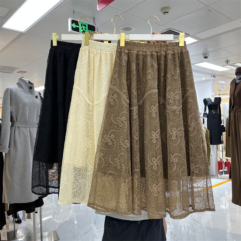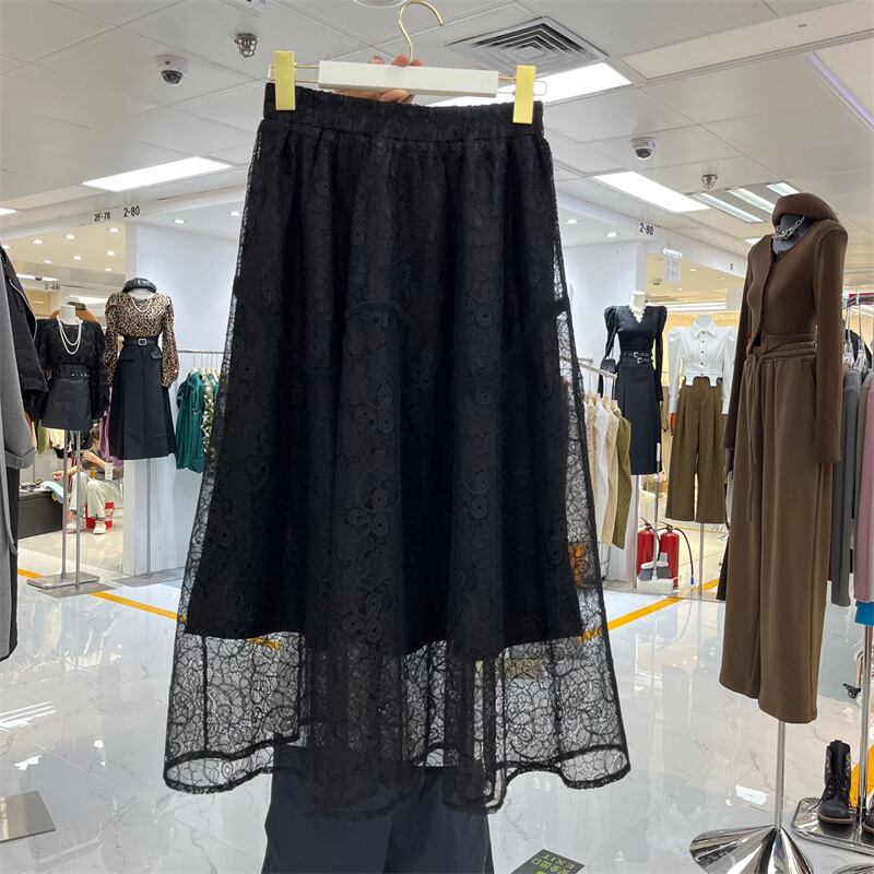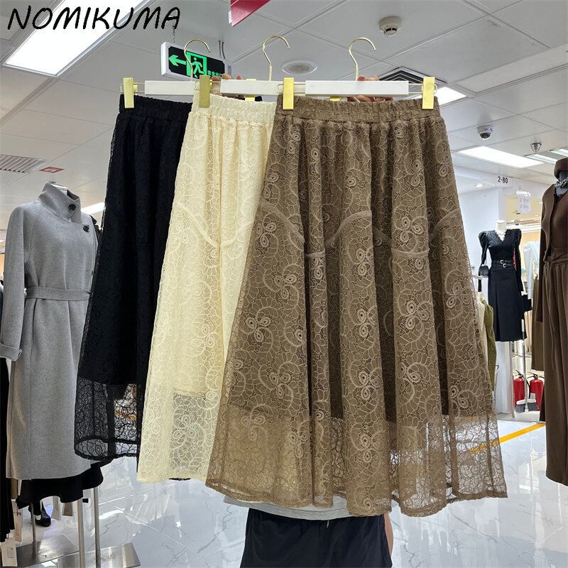 Nomikuma 甘いシックなレースのスカート 2022 秋の中空アウトフック A ラインスタイルの女性のスカート段 Faldas デ 大人ガーリー スウィート キュート カジュアル オータム 秋物 Aライン kor86037105208