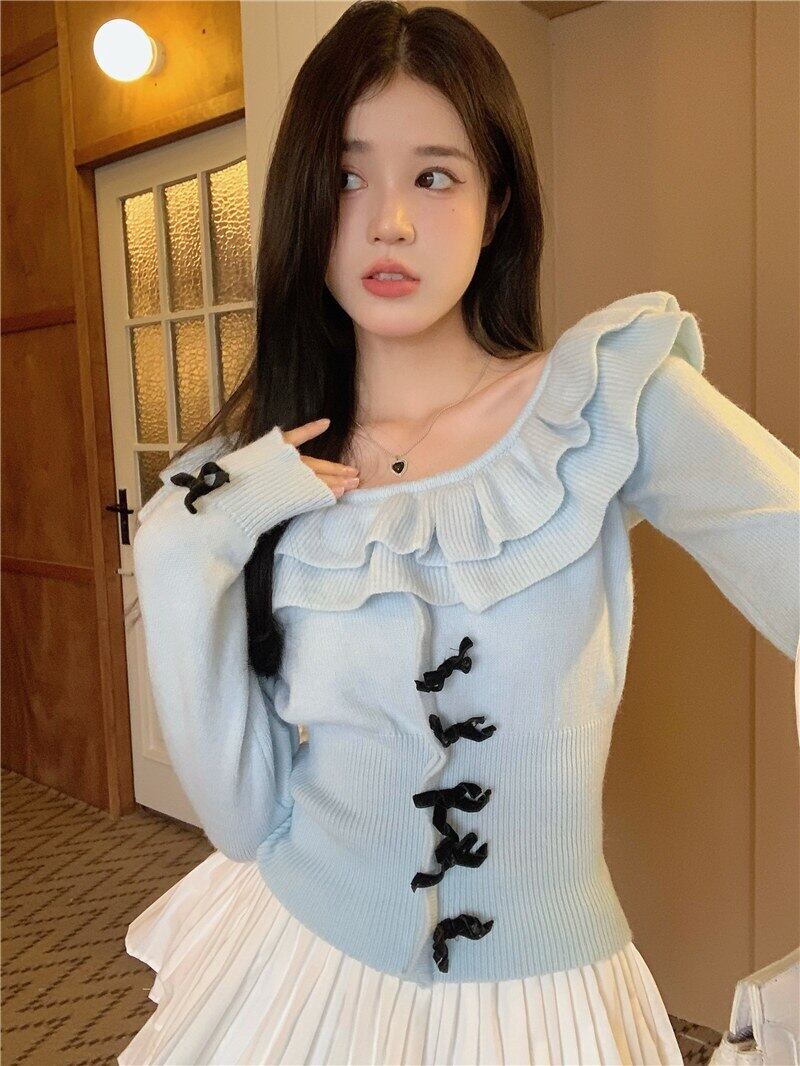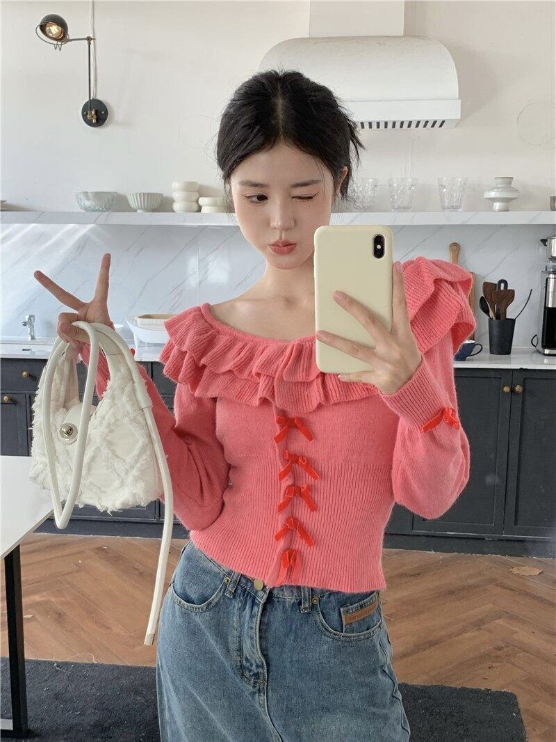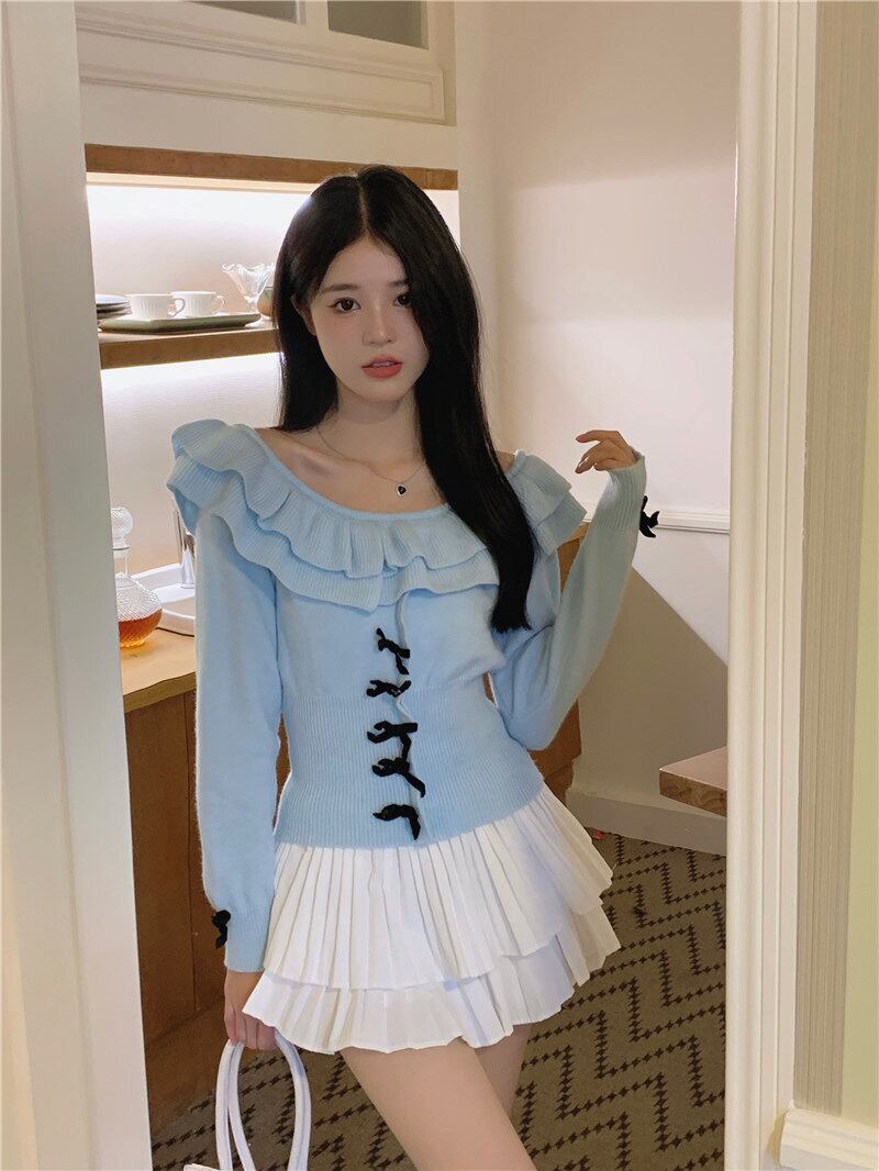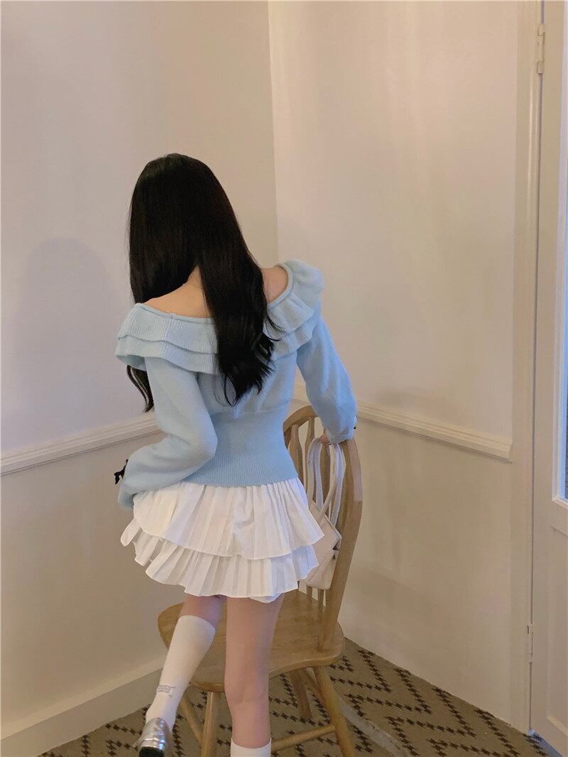 Nomikuma ニット女性オフショルダーフリルニット長袖トップス 2022 秋スリムプルオーバーセータープル ロング オータム 秋物 kor96459780725