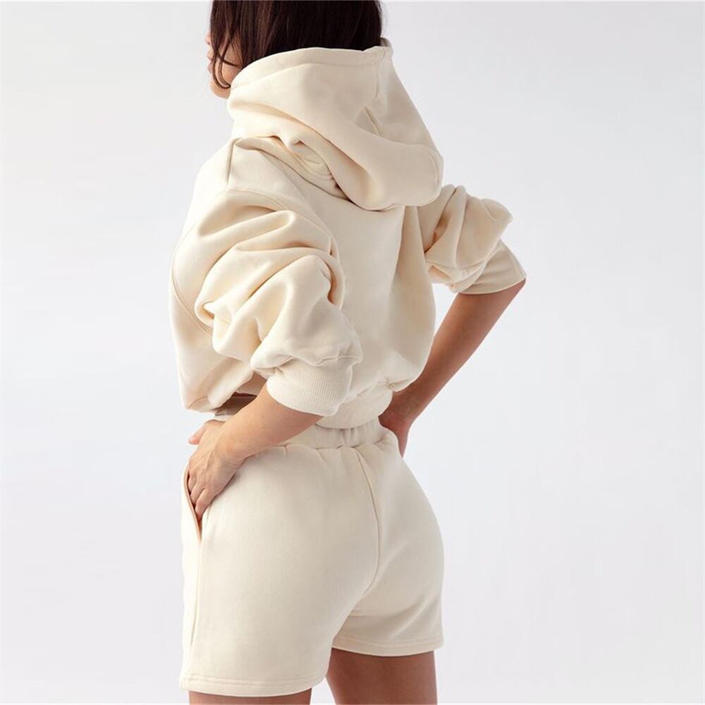 Nomikuma 因果ポケットトレーナーショーツセット 2022 秋冬長袖パーカートップ + レースアップウエストショート衣装 ロング オータム 秋物 ウィンター 冬物 ブルマー kor19753377206