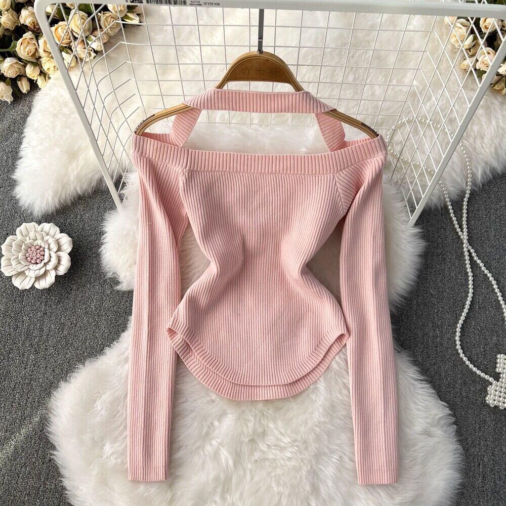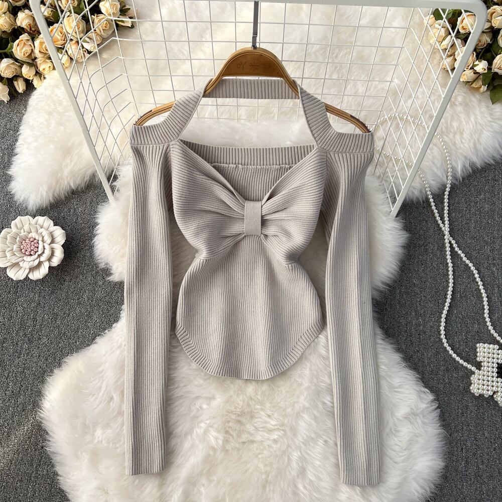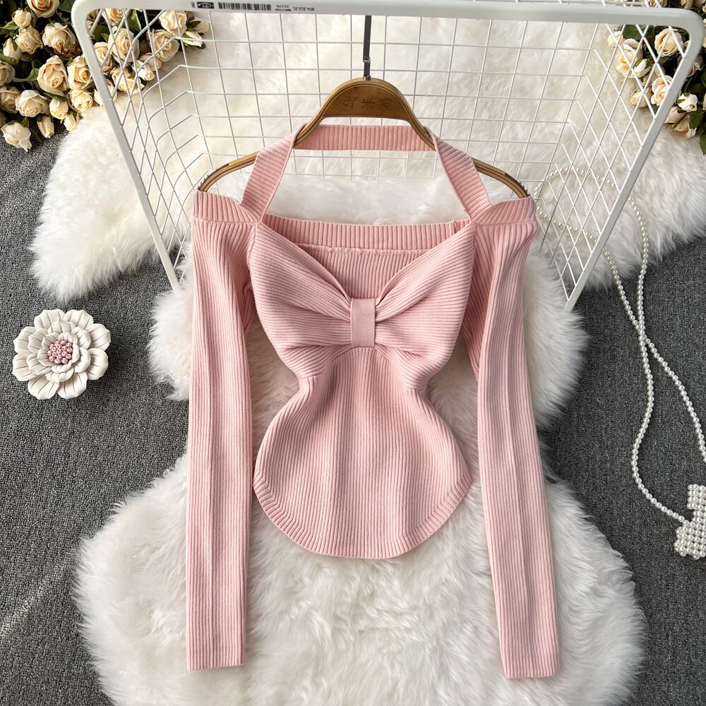 Nomikuma セクシーなホルターストラップレス V ネックニットトップス女性長袖スリムストレッチセーター 2022 秋冬ボトムプルオーバー ロング オータム 秋物 ウィンター 冬物 Vネック kor11910584202