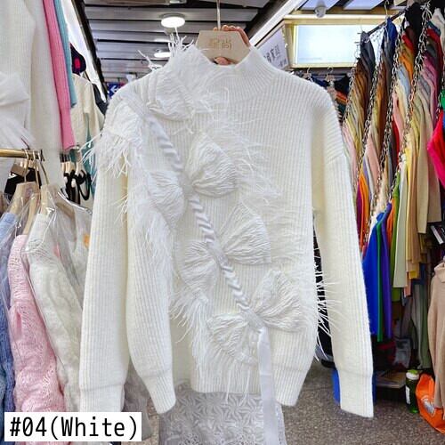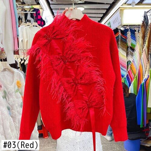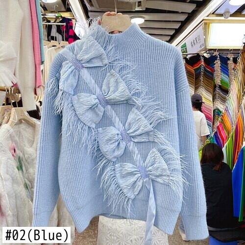 ノミクマ シック ビーズちょう結び テルパッチワーク ニットセーター 2022秋冬 プルオーバー 因果 半衿 あったか ニット リボン オータム 秋物 ウィンター 冬物 kor53096201301