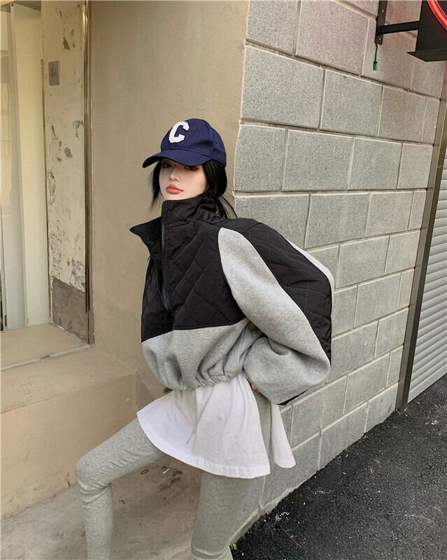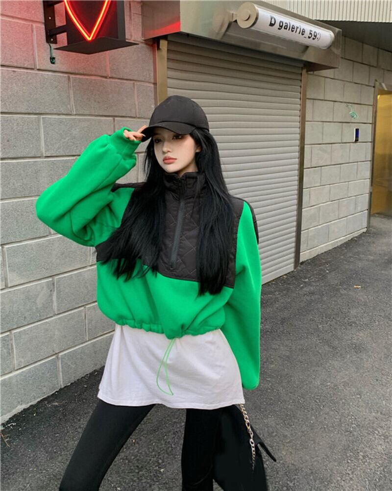 Nomikuma ヒットカラージッパースタンドネックパーカー女性 2022 秋冬巾着ショートスウェットシャツ長袖ジャンパー ロング オータム 秋物 ウィンター 冬物 kor43457348437