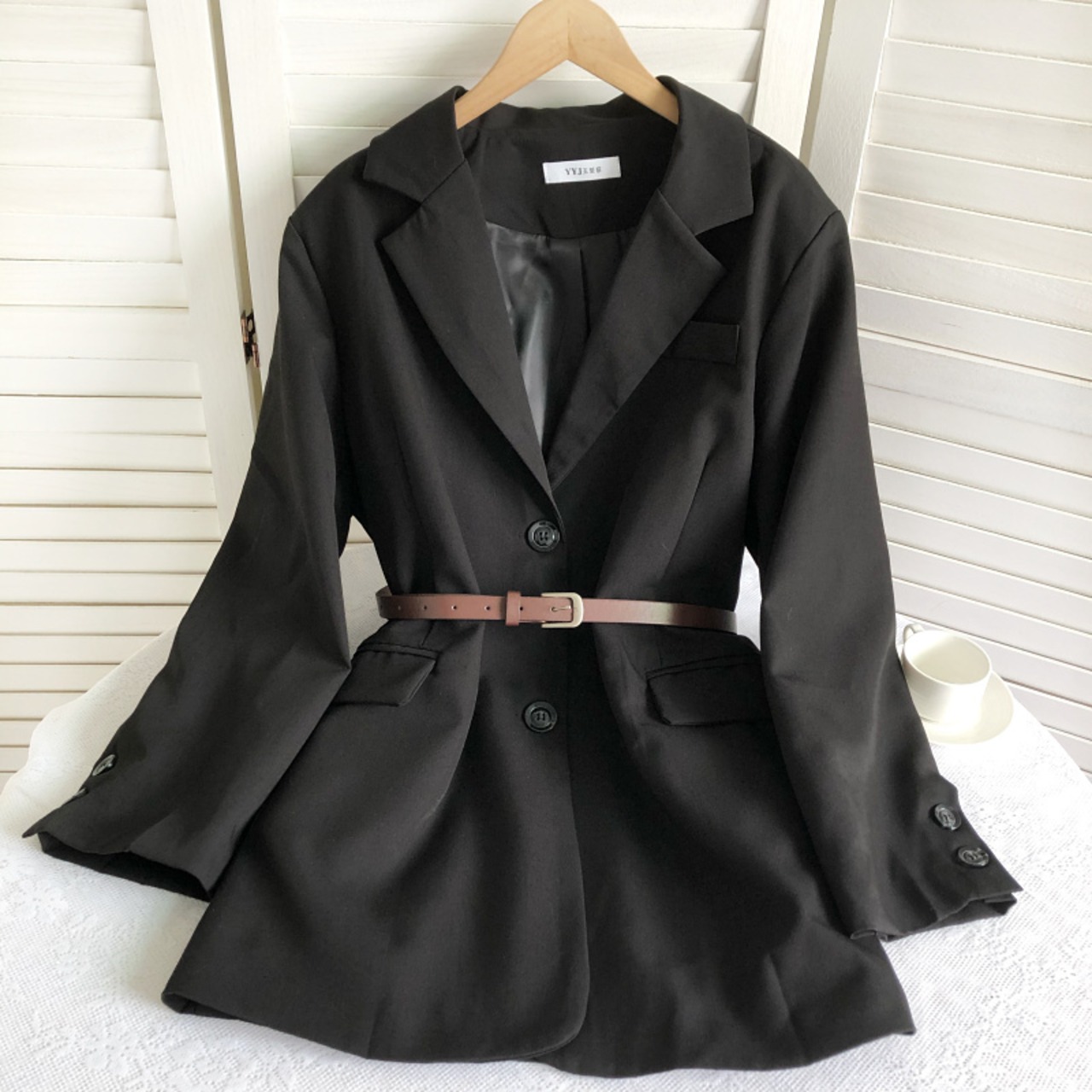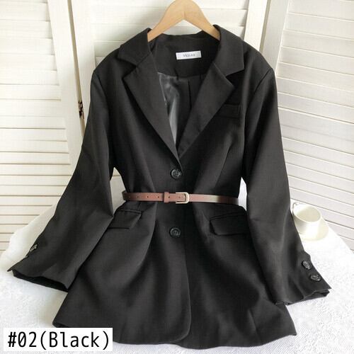 Nomikuma シックな秋冬 2022 ノッチ襟因果長袖スーツジャケットベルトスリムウエスト女性ブレザーコート ロング オータム 秋物 ウィンター 冬物 ハーネス kor91126630610
