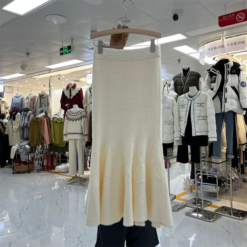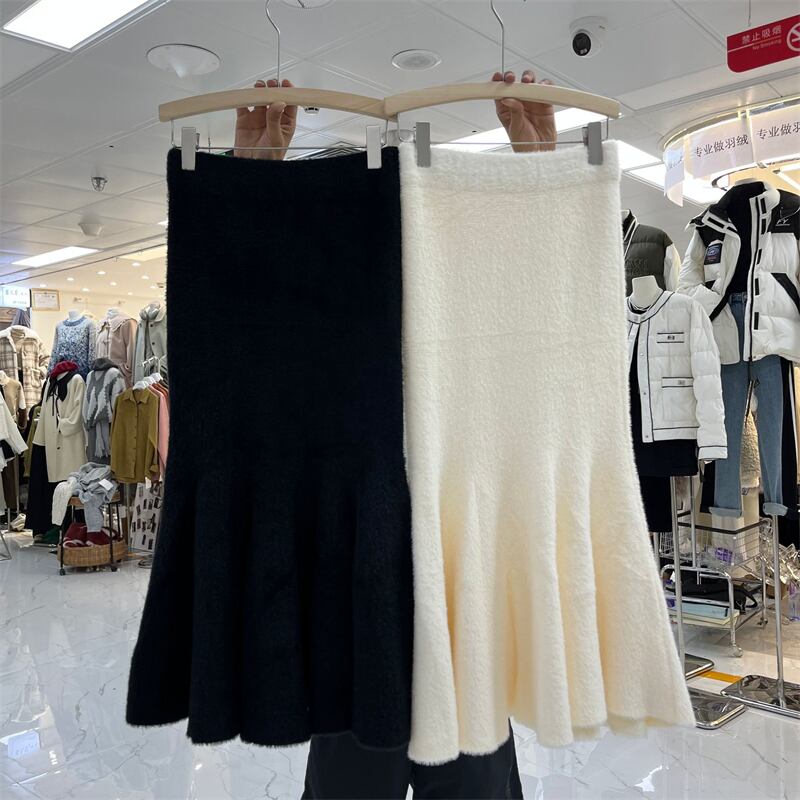 Nomikuma 厚いフェイクミンクカシミヤ女性スカートウエストフリルセーターマーメイドスカート秋冬ボトムス オータム 秋物 ウィンター 冬物 ファー kor20705524022