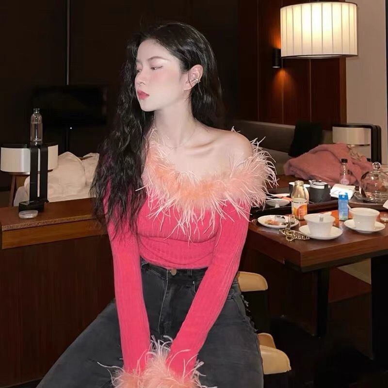 Nomikuma 羽パッチワークオフショルダー長袖クロップニットトップススリム女性ニットセーター 2022 ロング kor53223036699