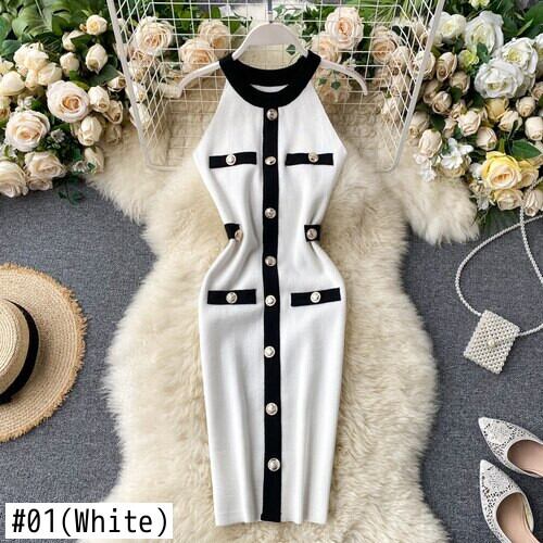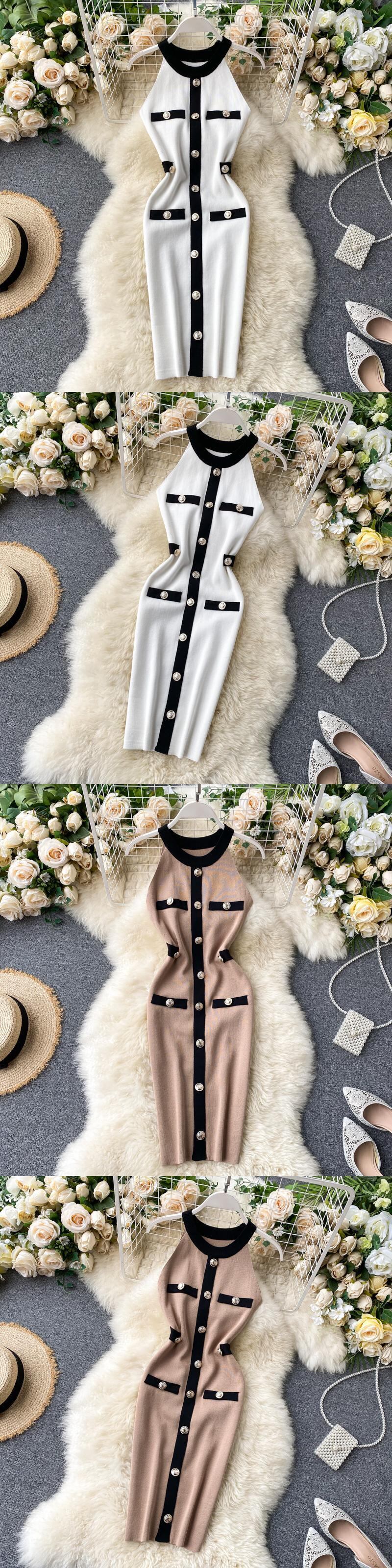 Nomikuma セータードレス女性の夏のノースリーブコントラストカラースリムボディコンニット Vestido Feminino ローブ Longue ロング サマー 夏物 kor70716030566