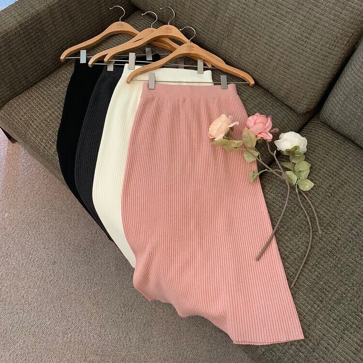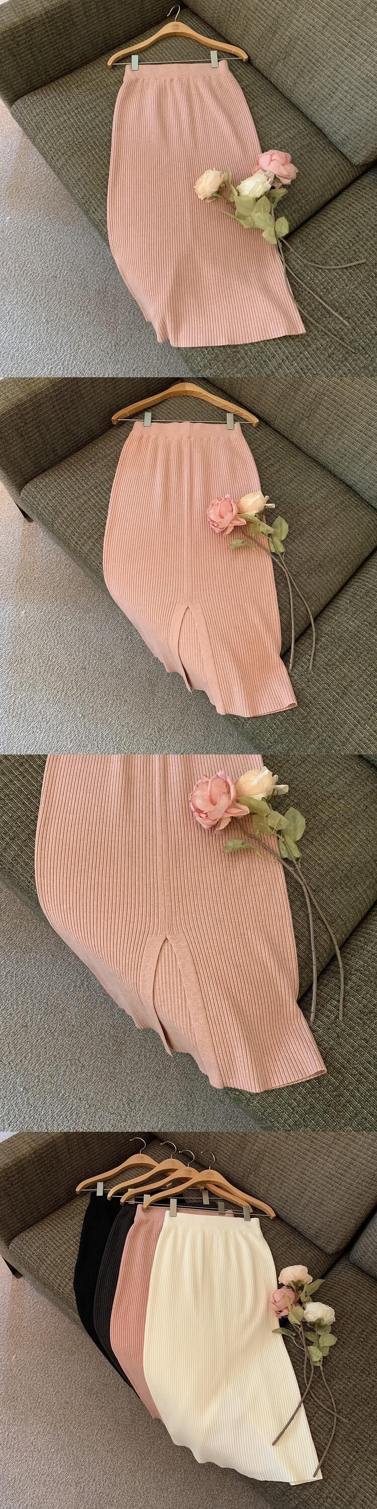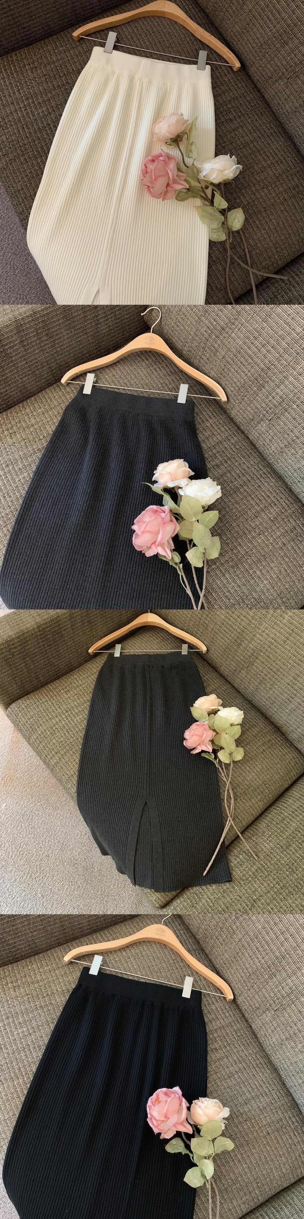 ノミクマ無地ウエストニットスプリットAラインスカート2022秋冬ボトムスセータースカート オータム 秋物 ウィンター 冬物 ソリッドカラー kor16185013356