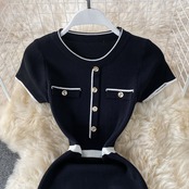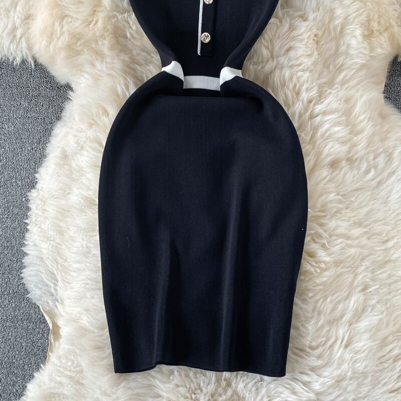 Nomikuma セータードレス女性 2022 夏コントラストカラーパッチワークニット Vestidos デ Vestido Feminino サマー 夏物 kor75113098847