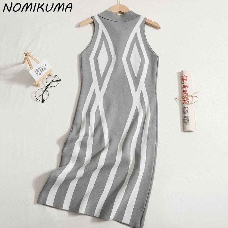 Nomikuma セーター Vestidos es パラ夏ターンダウン襟ノースリーブニットシックな女性ドレスドレス サマー 夏物 kor82840058836