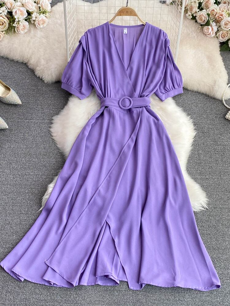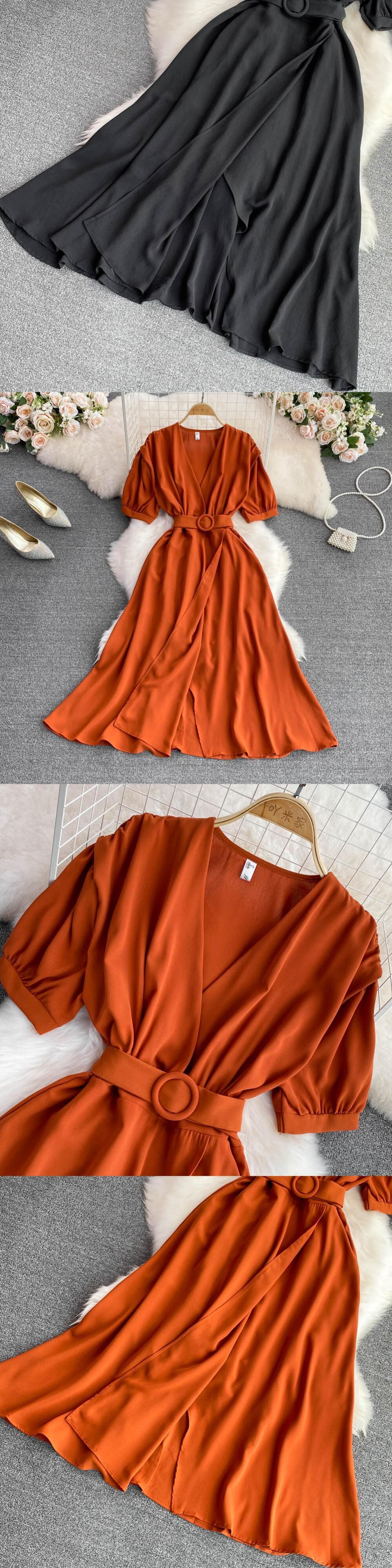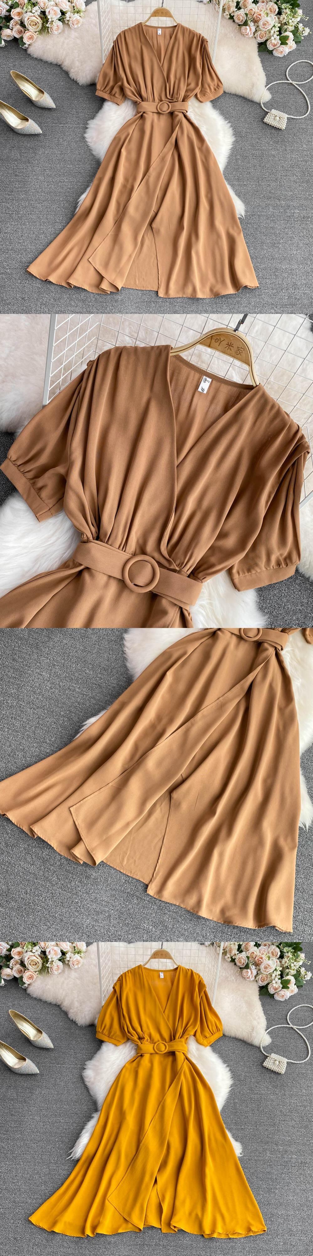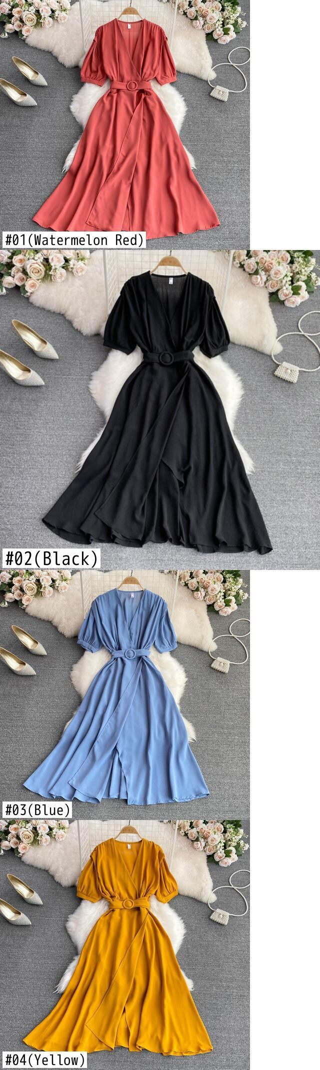 Nomikuma ミディ e ローブ Longue Dress 女性夏パフスリーブスリムウエストチュニック巾着 Vestido ロング サマー 夏物 kor42645720899