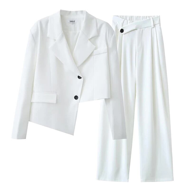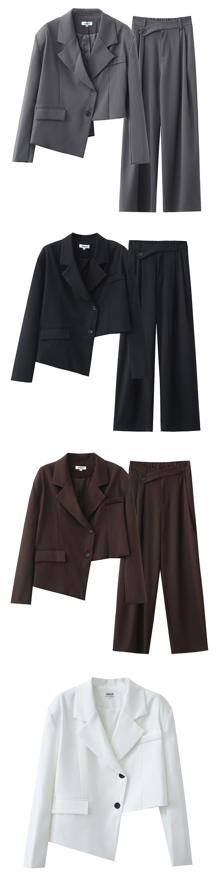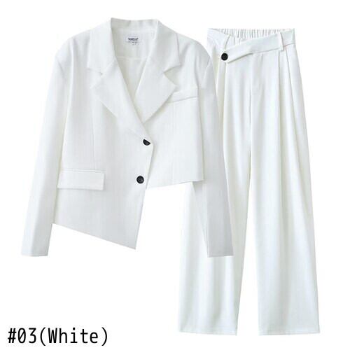 Nomikuma ツーピース女性セット不規則なショートブレザーコート + ウエストロングスーツパンツ 2022 秋衣装 オータム 秋物 kor67771632341